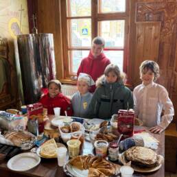 22 февраля, в неделю сыропустную, священник Алексей Пиков, настоятель храма иконы Божией Матери «Взыскание погибших», провёл беседу с детьми воскресной школы. Темой общения стал смысл традиций Масленицы, связь Сырной недели и Великого поста, значение прощения и примирения в прощëное воскресенье.