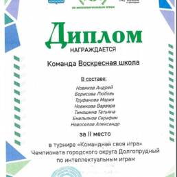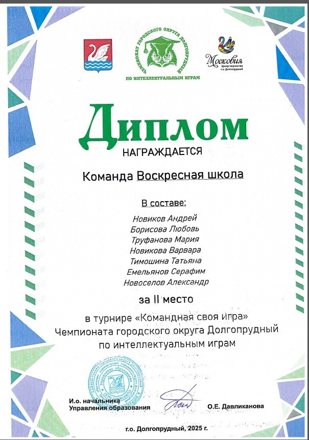 Воспитанники воскресной школы Покровского храма мкр. Шереметьевский г. Долгопрудный заняли II место в командной «Своей игре». Команда молодая, но её участники уже успели съездить на соревнования в Коломну, провести несколько онлайн-тренировок. Тем не менее победа стала неожиданностью для всех, и прежде всего, для самих ребят. Нет сомнений, что команду ждет большое будущее!