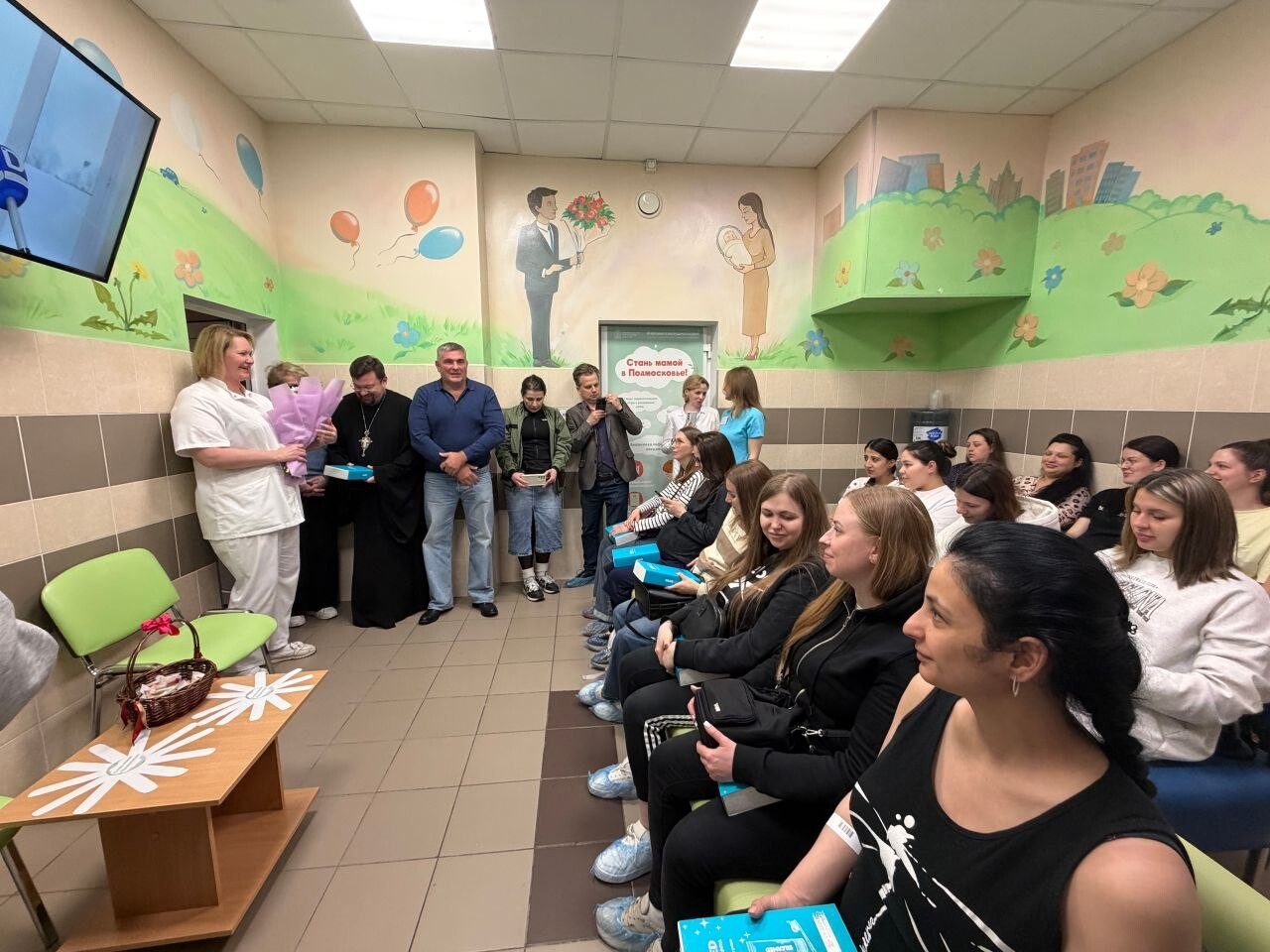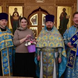 По окончании праздничной Божественной литургии в храмах Долгопрудненского благочиния совершили особый молебен и поздравили будущих мам. Затем в роддоме при Долгопрудненской больнице состоялся праздник, организованный администрацией лечебного учреждения и благочинием. Открыла его заместитель главного врача по родовспоможению, врач высшей категории, заведующая роддомом Швырева Е.А. С приветственным словом к участникам торжества обратился заместитель благочинного Долгопрудненского церковного округа, ответственный в благочинии за взаимодействие с медицинскими учреждениями протоиерей Александр Суворкин. Он особо отметил труды медперсонала, благодаря которым Долгопрудненский родильный дом получил высокую награду – сертификат ФГБУ «Национальный институт качества» Росздравнадзора. От лица Совета депутатов г.о. Долгопрудный выступил депутат Самородов А.А. и преподнес участникам мероприятия подарки. Клирики Георгиевского храма, ответственный по вопросам семьи, материнства и детства священник Рустик Мусин и ответственный по культуре диакон Евгений Нектаров, совершили молебен ко Пресвятой Богородице. Затем силами волонтёров Долгопрудненского благочиния, несущих послушание при больнице, был дан концерт.