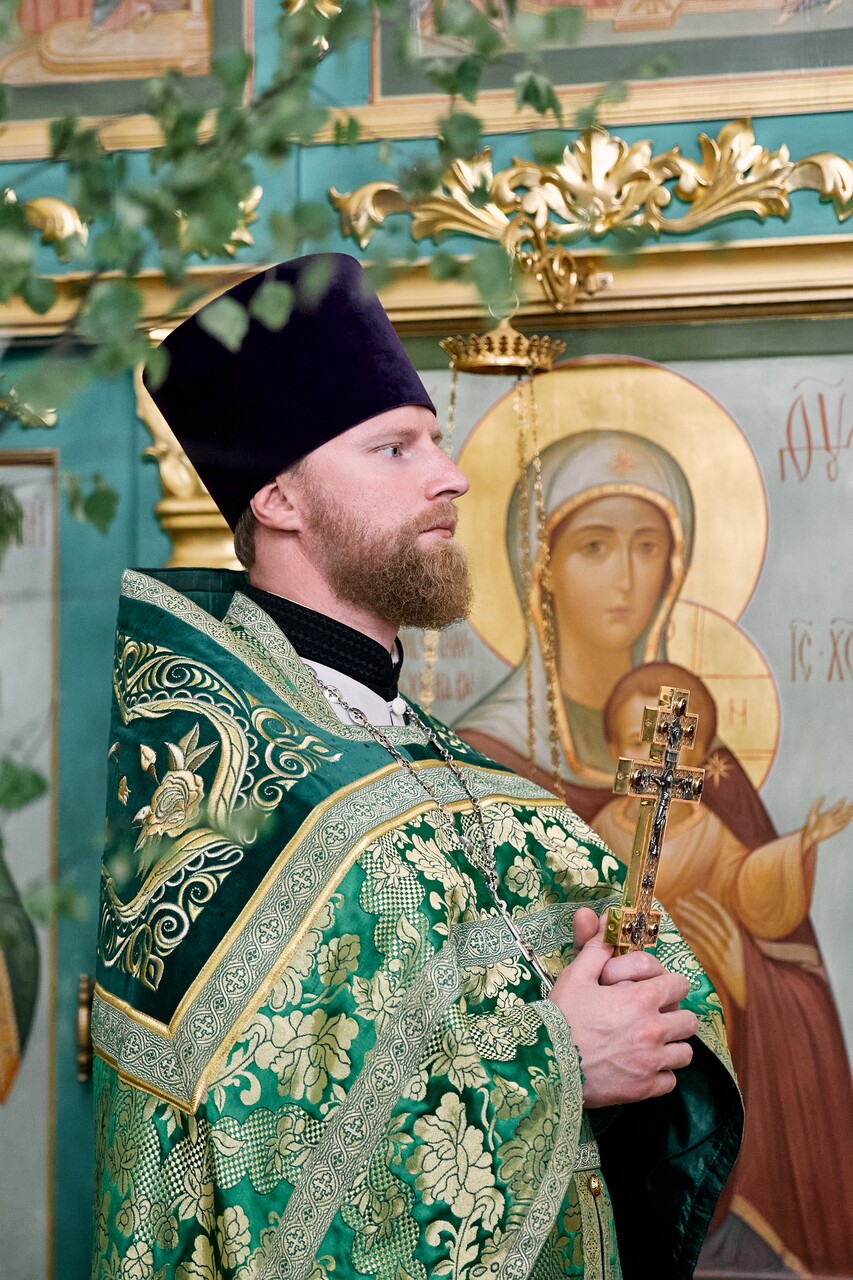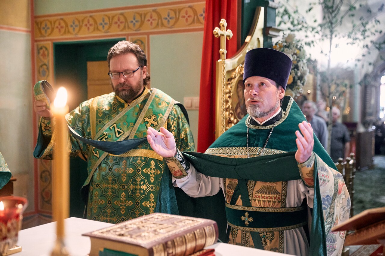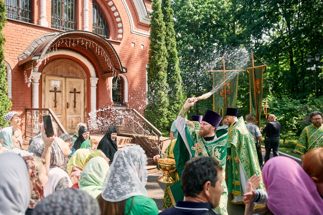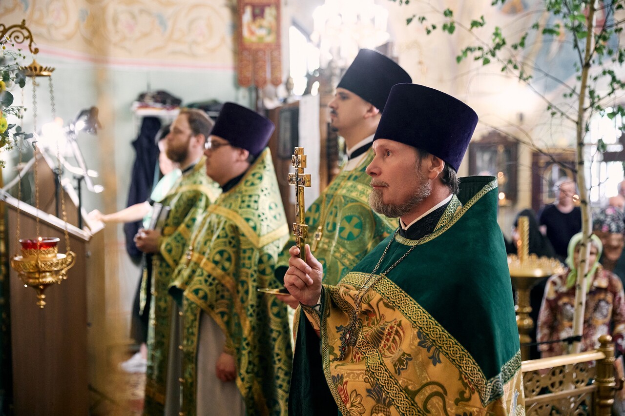 9 июня благочинный Долгопрудненского церковного округа протоиерей Андрей Хмызов совершил праздничную Божественную литургию в храме Троицы Живоначальной г. Химки. Ему сослужили: благочинный Королевского церковного округа иерей Димитрий Поповский; председатель Миссионерского отдела Сергиево-Посадской епархии, настоятель храма иерей Павел Зуев; председатель Межъепархиального отдела по делам Молодёжи Московской митрополии и председатель отдела по делам молодёжи Сергиево-Посадской епархии иерей Димитрий Нестеров; иерей Евгений Торкунов, ответственный в Химкинском благочинии за Отдел по издательской деятельности и взаимодействию со СМИ; клирик храма иерей Александр Савельев.