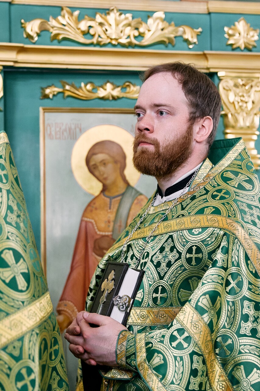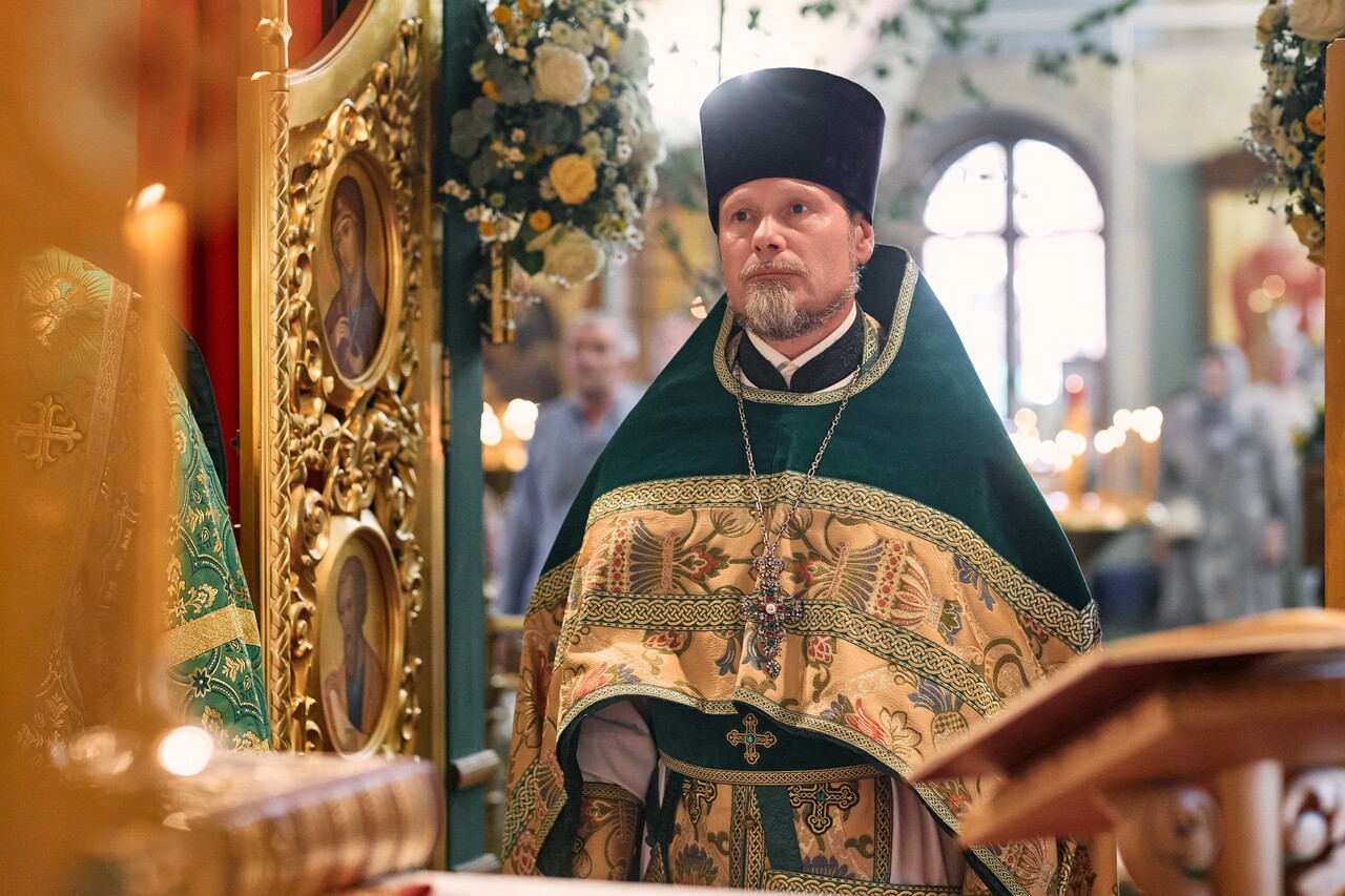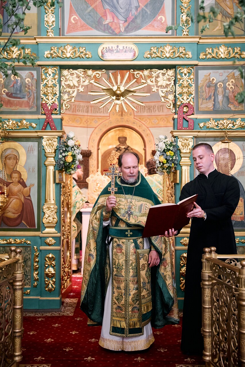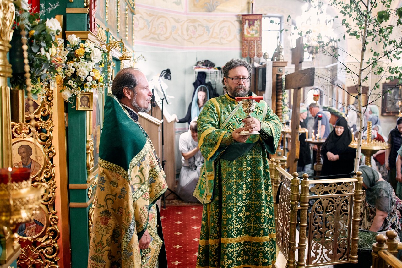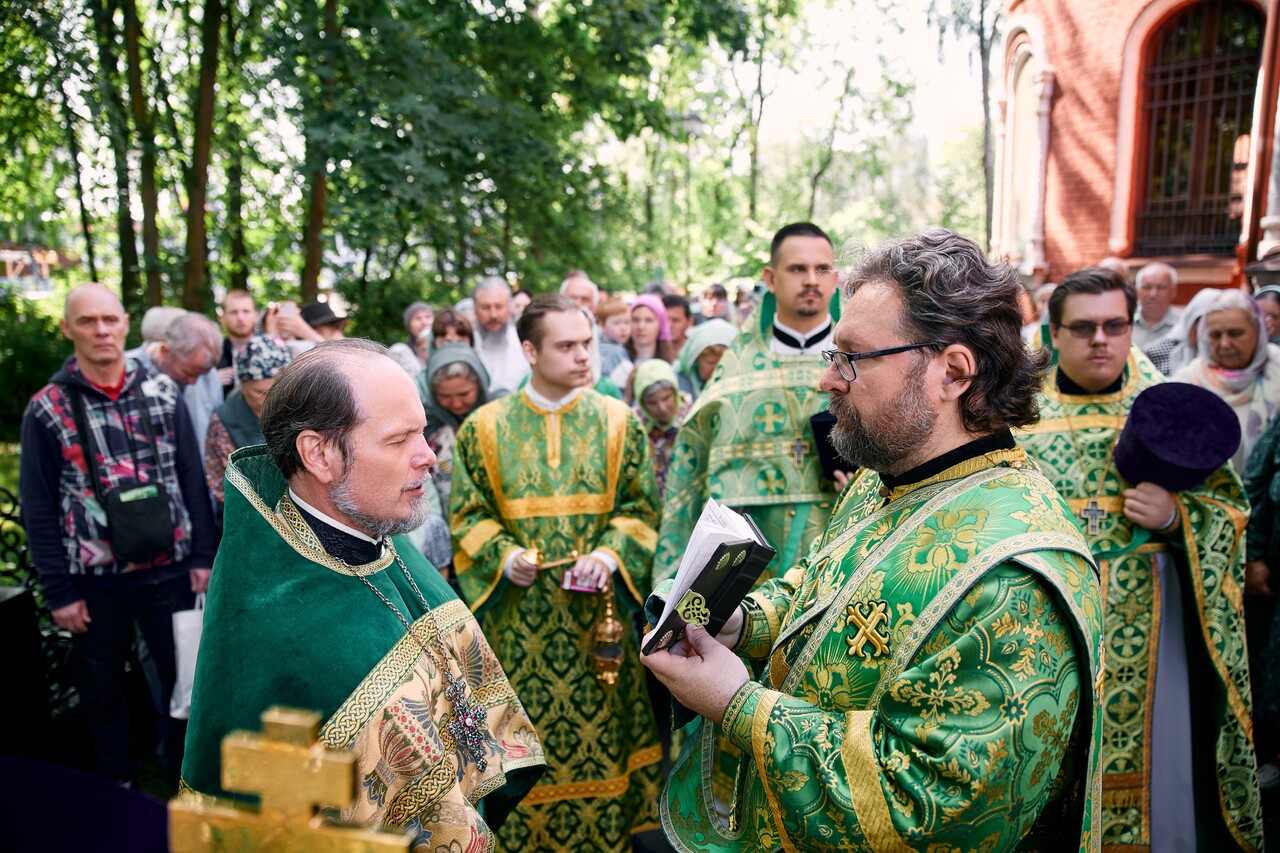 9 июня благочинный Долгопрудненского церковного округа протоиерей Андрей Хмызов совершил праздничную Божественную литургию в храме Троицы Живоначальной г. Химки. Ему сослужили: благочинный Королевского церковного округа иерей Димитрий Поповский; председатель Миссионерского отдела Сергиево-Посадской епархии, настоятель храма иерей Павел Зуев; председатель Межъепархиального отдела по делам Молодёжи Московской митрополии и председатель отдела по делам молодёжи Сергиево-Посадской епархии иерей Димитрий Нестеров; иерей Евгений Торкунов, ответственный в Химкинском благочинии за Отдел по издательской деятельности и взаимодействию со СМИ; клирик храма иерей Александр Савельев.