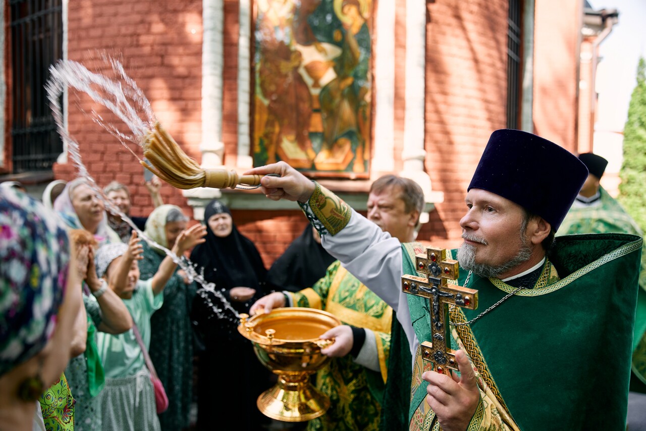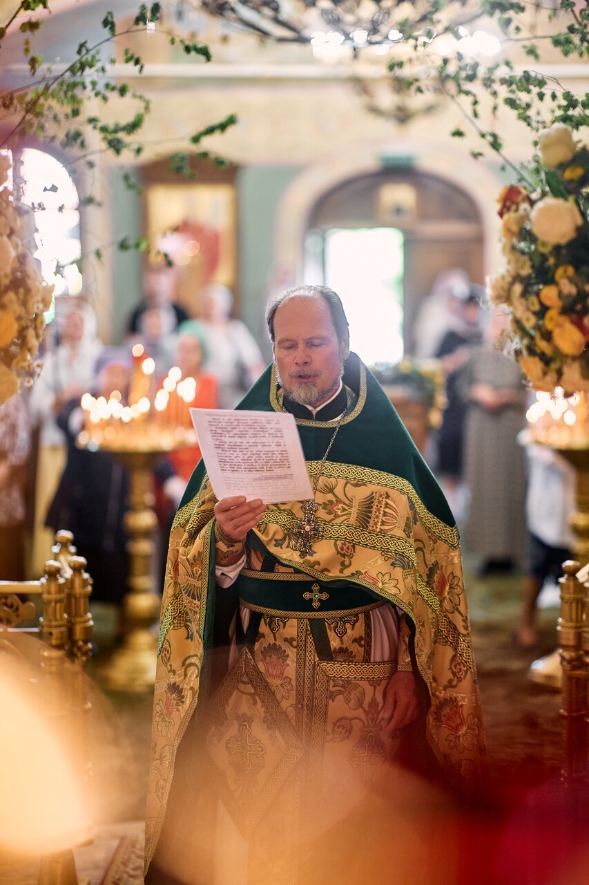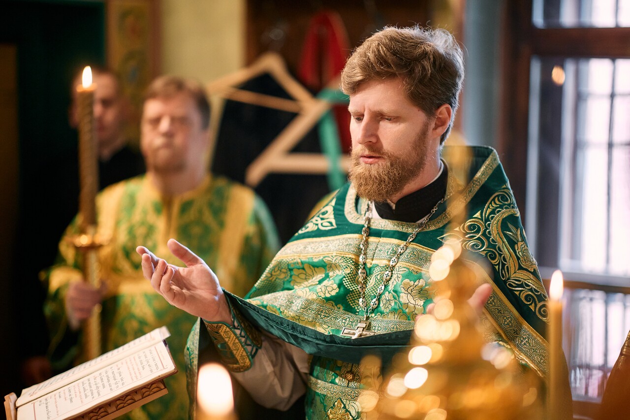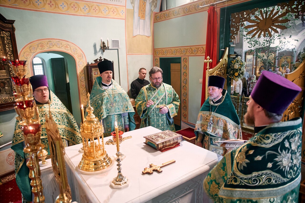 9 июня благочинный Долгопрудненского церковного округа протоиерей Андрей Хмызов совершил праздничную Божественную литургию в храме Троицы Живоначальной г. Химки. Ему сослужили: благочинный Королевского церковного округа иерей Димитрий Поповский; председатель Миссионерского отдела Сергиево-Посадской епархии, настоятель храма иерей Павел Зуев; председатель Межъепархиального отдела по делам Молодёжи Московской митрополии и председатель отдела по делам молодёжи Сергиево-Посадской епархии иерей Димитрий Нестеров; иерей Евгений Торкунов, ответственный в Химкинском благочинии за Отдел по издательской деятельности и взаимодействию со СМИ; клирик храма иерей Александр Савельев.