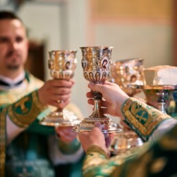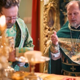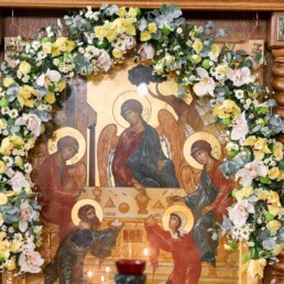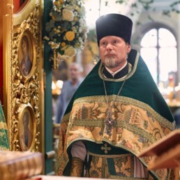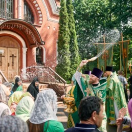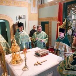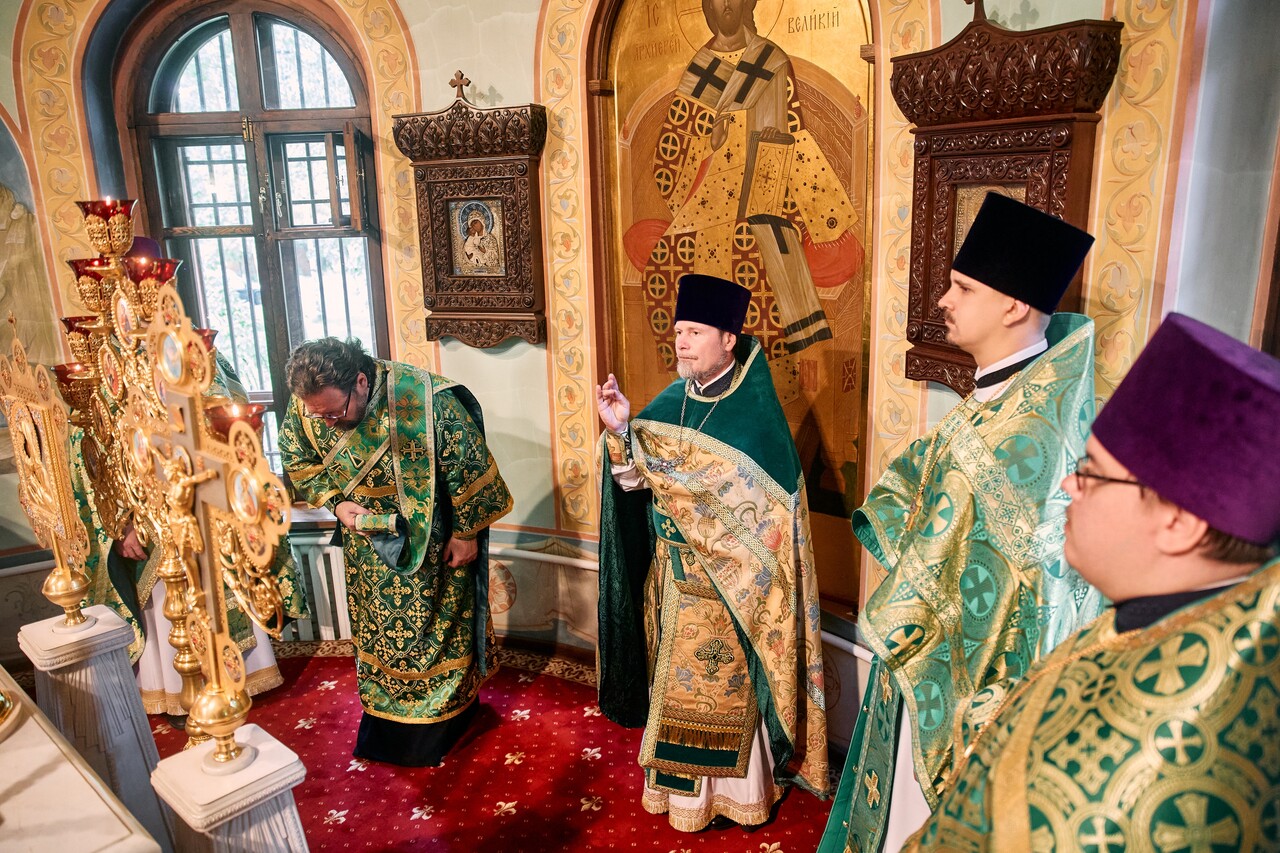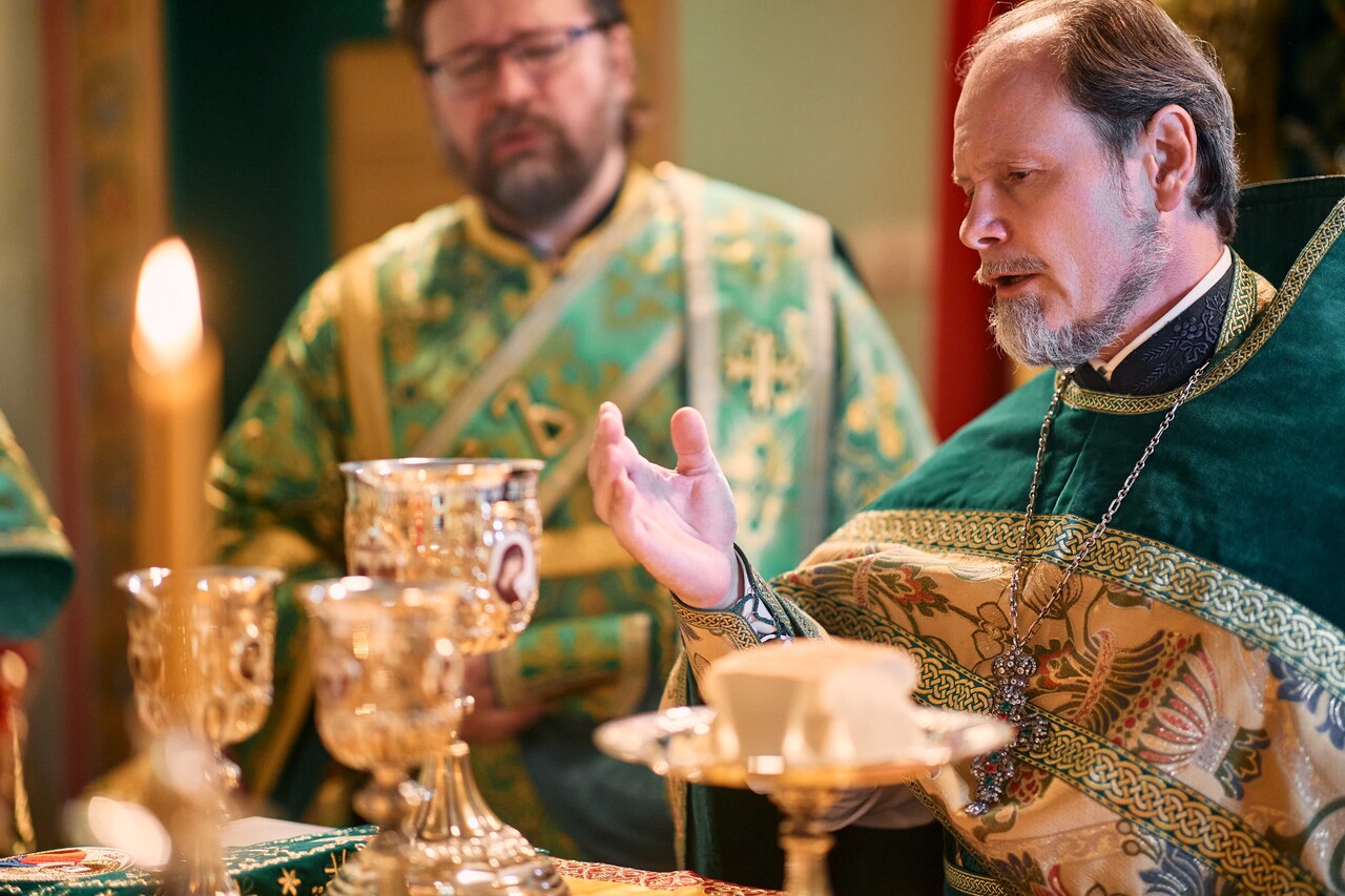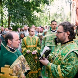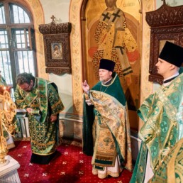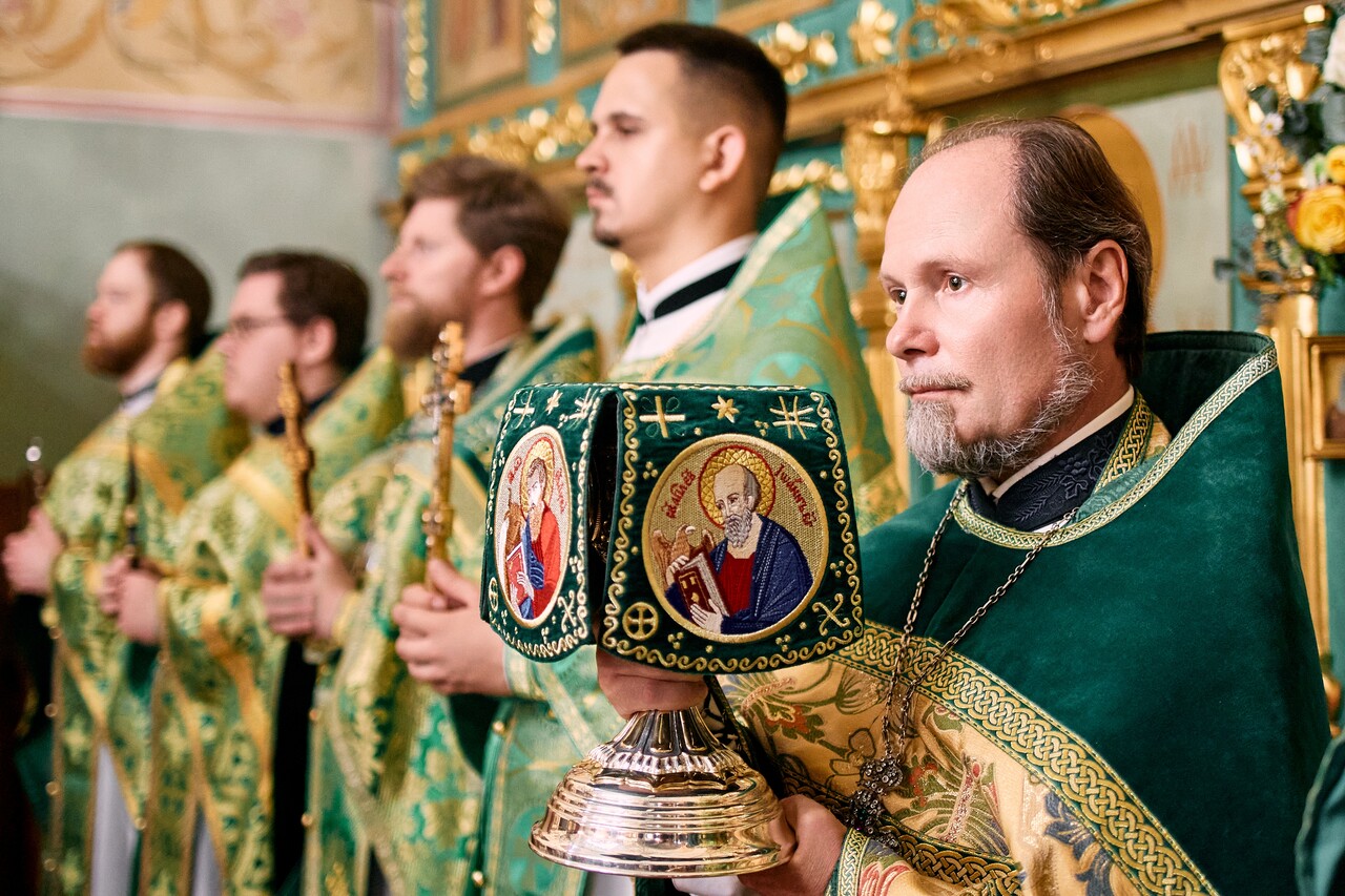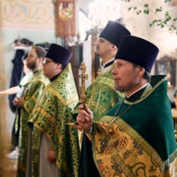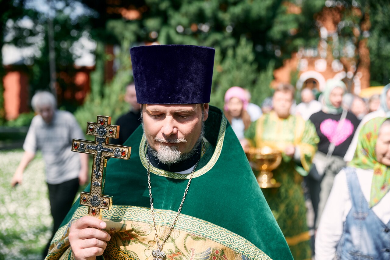 9 июня благочинный Долгопрудненского церковного округа протоиерей Андрей Хмызов совершил праздничную Божественную литургию в храме Троицы Живоначальной г. Химки. Ему сослужили: благочинный Королевского церковного округа иерей Димитрий Поповский; председатель Миссионерского отдела Сергиево-Посадской епархии, настоятель храма иерей Павел Зуев; председатель Межъепархиального отдела по делам Молодёжи Московской митрополии и председатель отдела по делам молодёжи Сергиево-Посадской епархии иерей Димитрий Нестеров; иерей Евгений Торкунов, ответственный в Химкинском благочинии за Отдел по издательской деятельности и взаимодействию со СМИ; клирик храма иерей Александр Савельев.