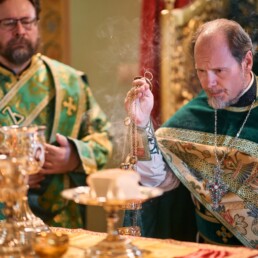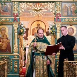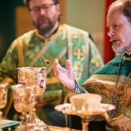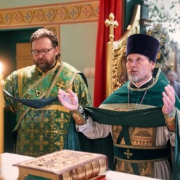 Настоятель храма иерей Павел Зуев обратился к прихожанам, поблагодарив за молитвы и представив служащее духовенство. Затем протоиерей Андрей Хмызов обратился к прихожанам с пастырским словом.