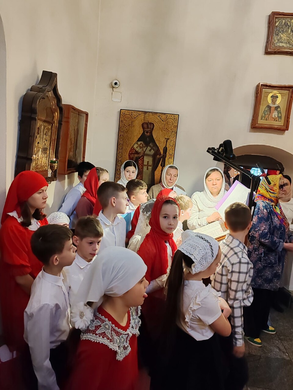 После службы, за праздничной трапезой под руководством своих педагогов Марии Петровны Пучковой и Софии Викторовны Сониной детский хор порадовал прихожан исполнением песен, посвященных празднику. Завершилось светлое утро колокольным звоном в исполнении юных клирошан и веселым катанием на лошадках.
