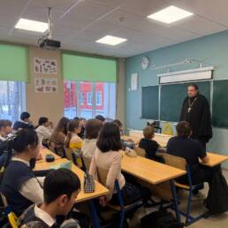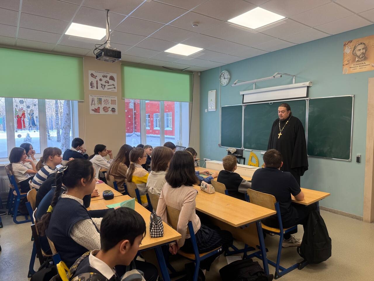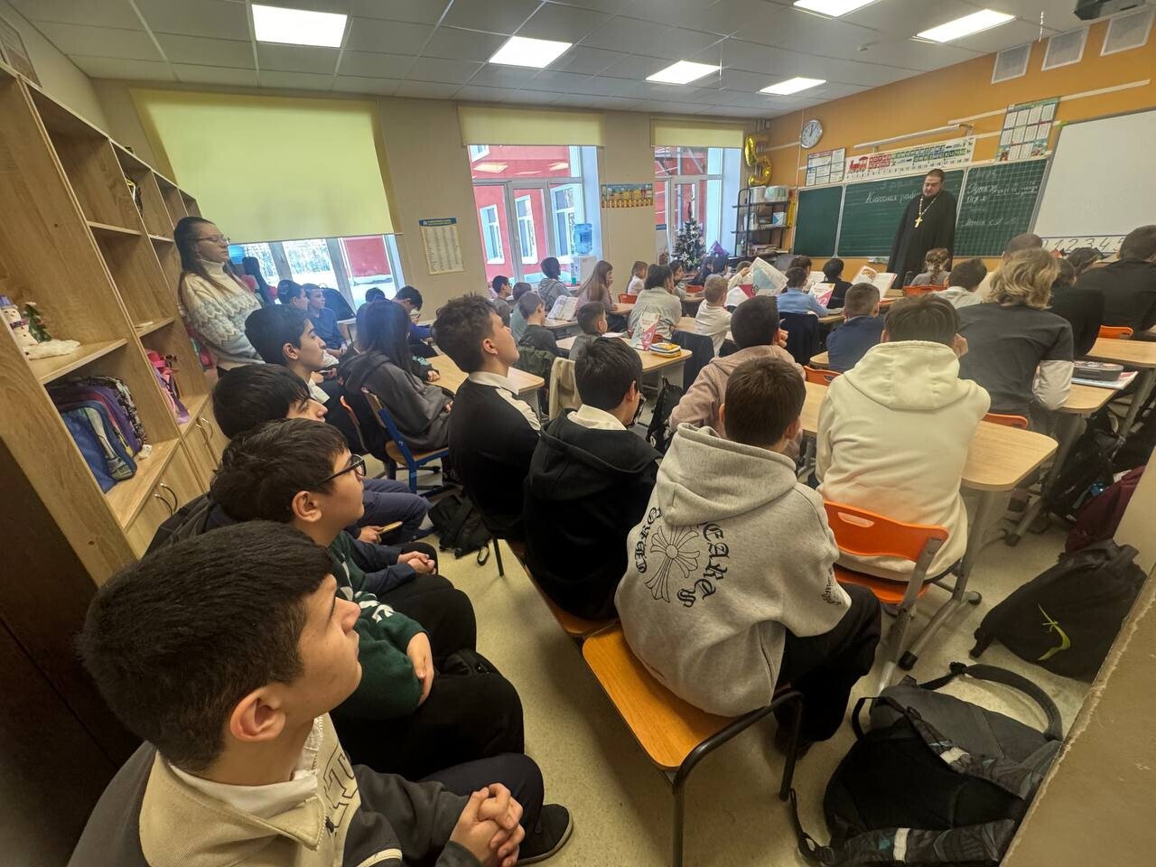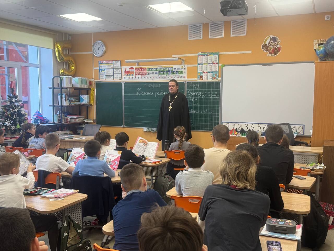 Занятия со школьниками провел священник Вячеслав Осипов, клирик храма Преображения Господня г. Долгопрудный.