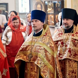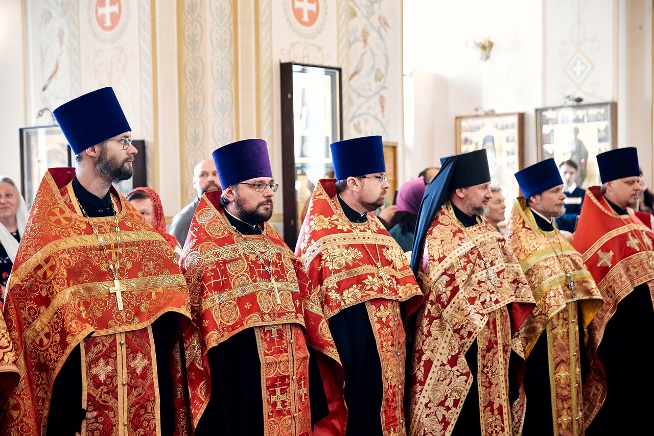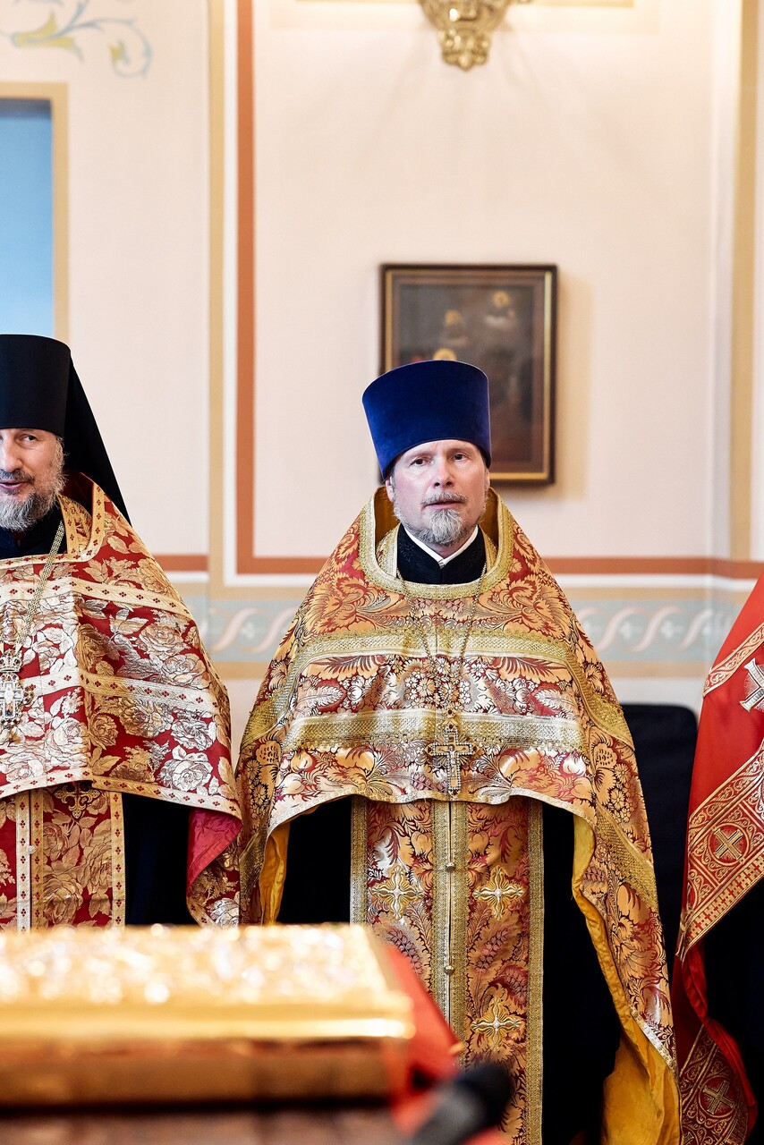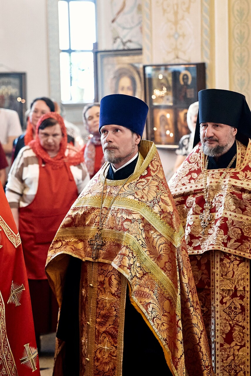 Его Преосвященству сослужили: секретарь Сергиево-Посадского епархиального управления, благочинный Ивантеевского церковного округа протоиерей Иоанн Монаршек; благочинный Химкинского церковного округа, настоятель Богоявленского храма иерей Павел Тарасов; благочинный Долгопрудненского церковного округа протоиерей Андрей Хмызов; духовенство Химкинского и Долгопрудненского благочиний.