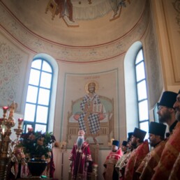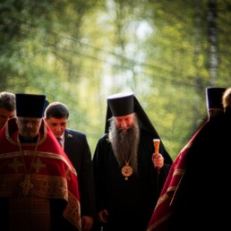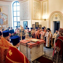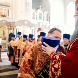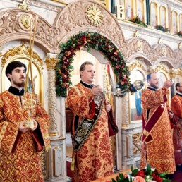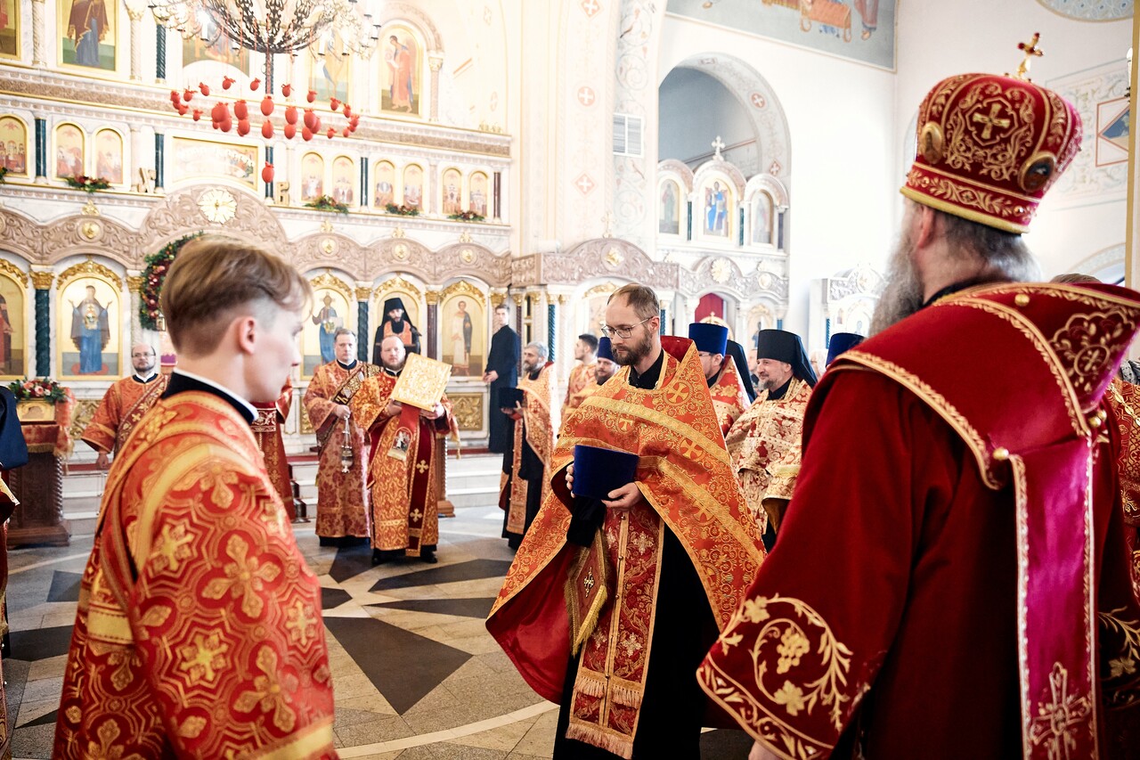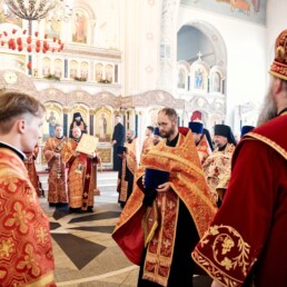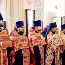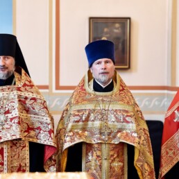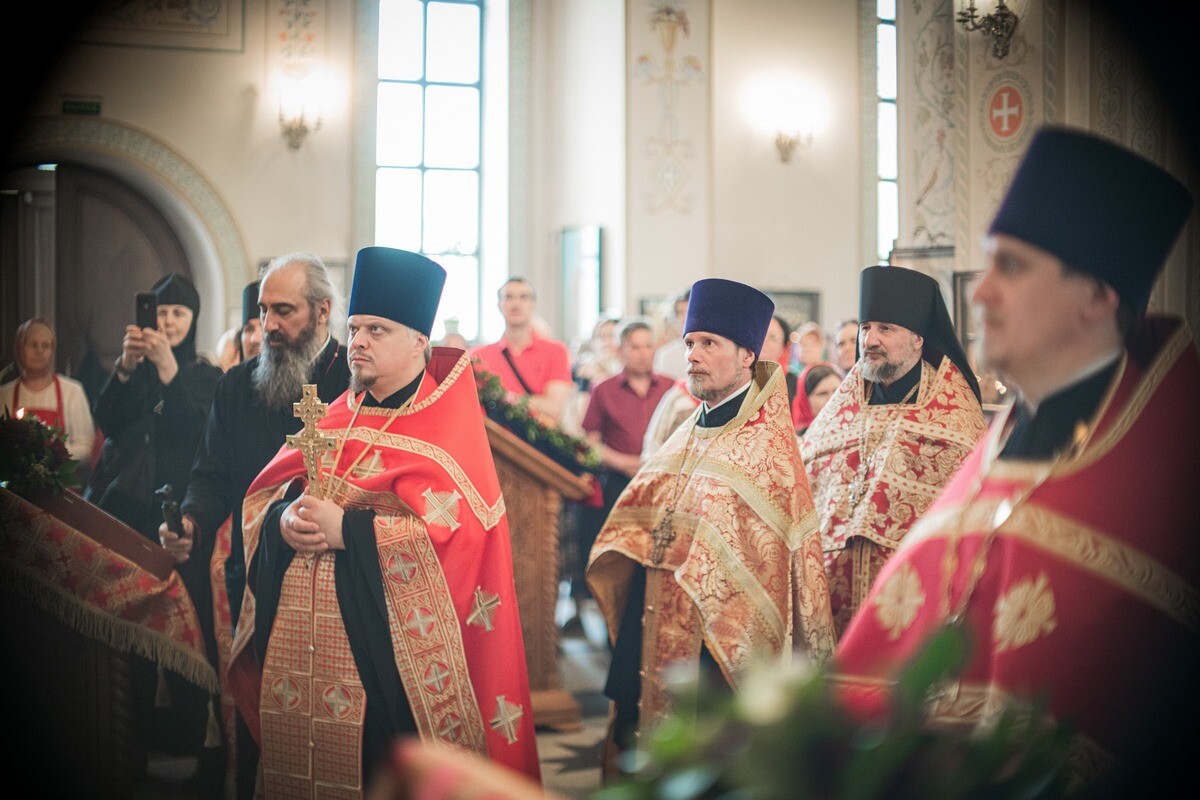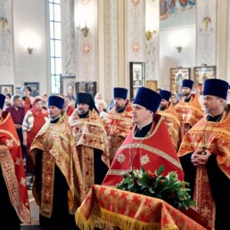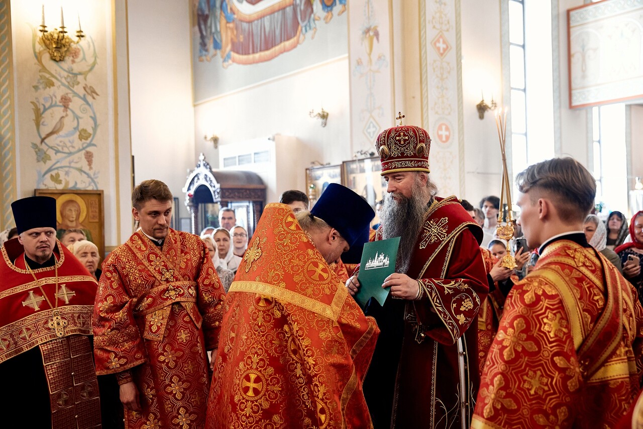 Его Преосвященству сослужили: секретарь Сергиево-Посадского епархиального управления, благочинный Ивантеевского церковного округа протоиерей Иоанн Монаршек; благочинный Химкинского церковного округа, настоятель Богоявленского храма иерей Павел Тарасов; благочинный Долгопрудненского церковного округа протоиерей Андрей Хмызов; духовенство Химкинского и Долгопрудненского благочиний.