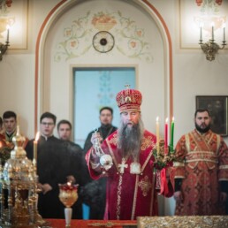 23 апреля 2025 года, в среду Светлой седмицы, епископ Сергиево-Посадский Кирилл возглавил вечернее пасхальное богослужение в Богоявленском храме в Химках.