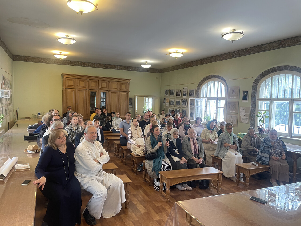 Трапезная храма с трудом вместила желающих узнать об исповедническом подвиге святителя, в числе которых были клирики и прихожане разных храмов благочиния. Лекция вызвала оживлённую дискуссию, которая продолжилась за чаепитием. Задавались вопросы, связанные с обновленческим расколом, судьбой обновленческого духовенства, личностью патриарха Сергия (Страгородского). Регент храма Вероника Анисимова познакомила гостя с историей Спасского храма.