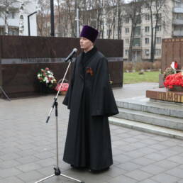 От Долгопрудненского благочиния участие в мероприятии принял клирик храма Преображения Господня священник Иоанн Слобжин, который перед минутой молчания обратился к собравшимся с напутственным словом.