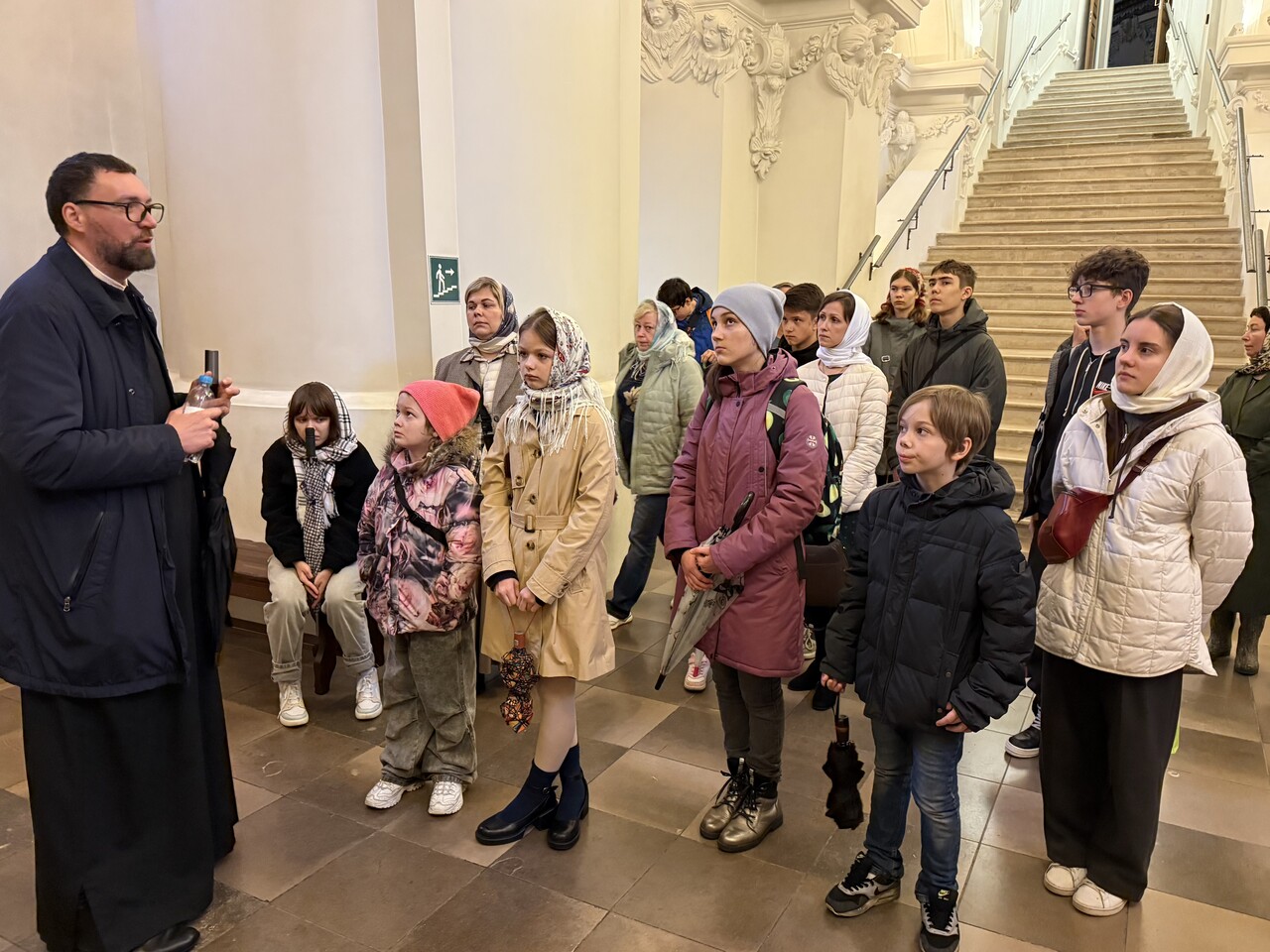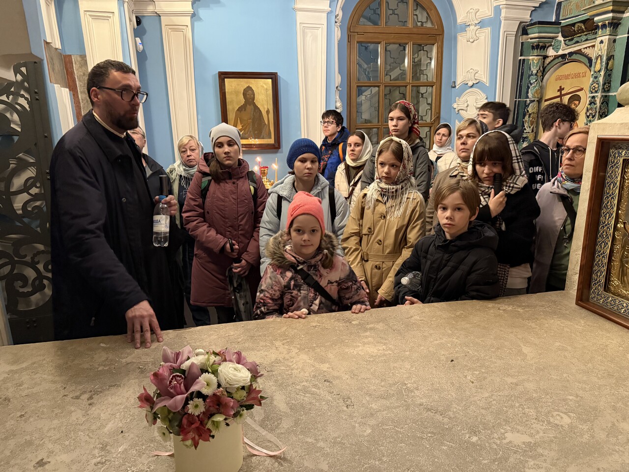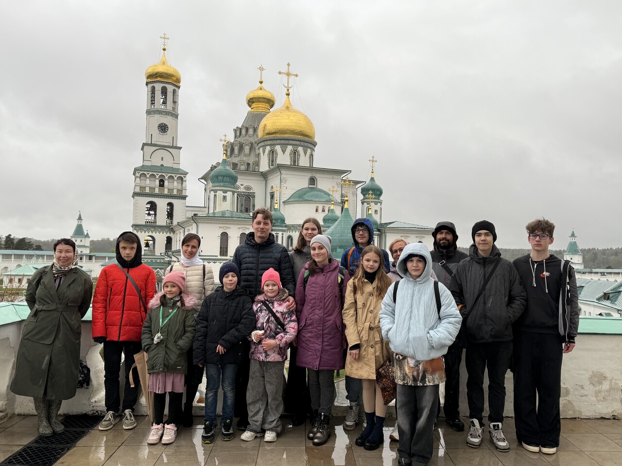 В подмосковной обители группу юных паломников встретил клирик монастыря диакон Виталий Петлицкий, который и провёл для них экскурсию. Ребята посетили Воскресенский собор, храм святых равноапостольных Константина и Елены со святым источником, Голгофскую церковь, приделы Страстей Господних, где приложились к ладони св.мученицы Татианы, поднялись на колокольню, а также побывали в галерее величественной ротонды. Завершилась экскурсия у Кувуклии (часовни) Гроба Господня — главной святыни Нового Иерусалима.