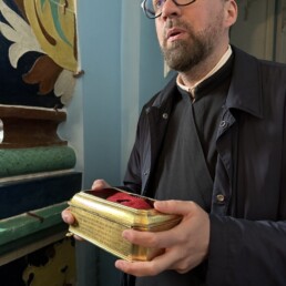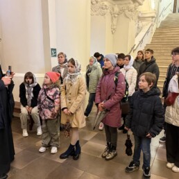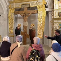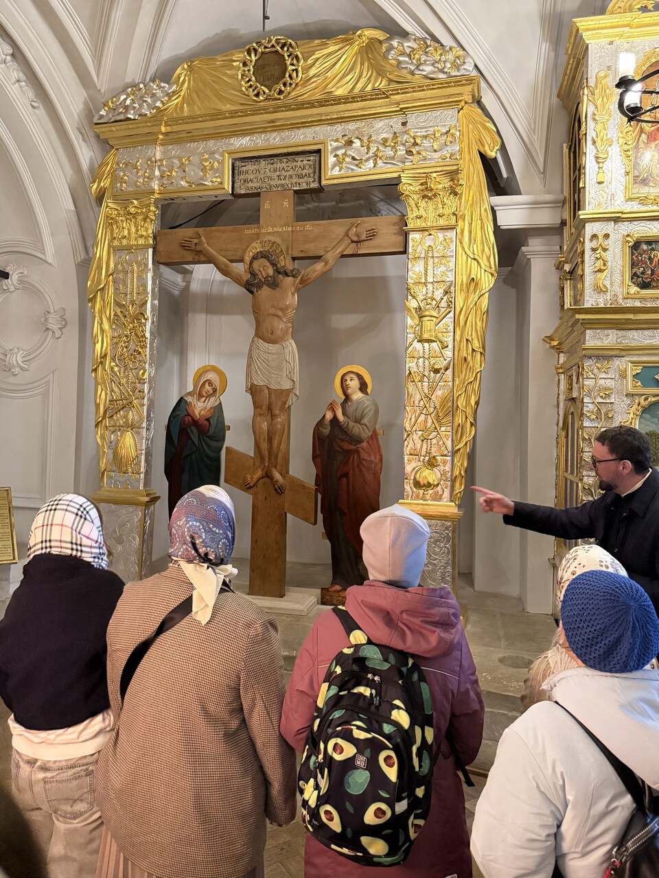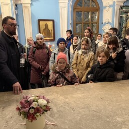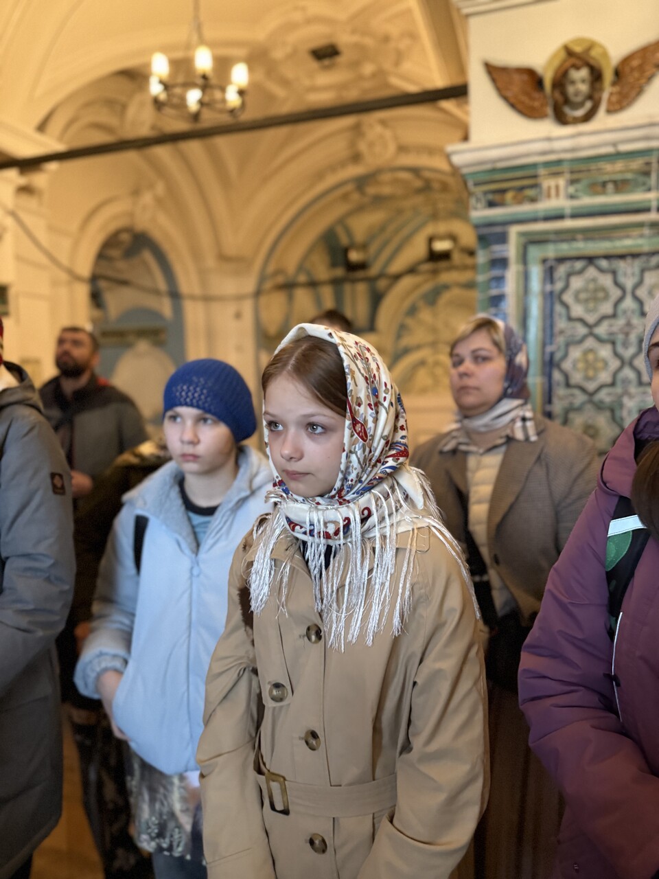 В подмосковной обители группу юных паломников встретил клирик монастыря диакон Виталий Петлицкий, который и провёл для них экскурсию. Ребята посетили Воскресенский собор, храм святых равноапостольных Константина и Елены со святым источником, Голгофскую церковь, приделы Страстей Господних, где приложились к ладони св.мученицы Татианы, поднялись на колокольню, а также побывали в галерее величественной ротонды. Завершилась экскурсия у Кувуклии (часовни) Гроба Господня — главной святыни Нового Иерусалима.