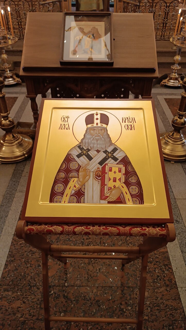 1 февраля, в Неделю о мытаре и фарисее, настоятель Георгиевского храма г. Долгопрудный протоиерей Александр Суворкин освятил икону святителя Луки Крымского, с любовью написанную талантливым иконописцем матушкой Надеждой Луневой.