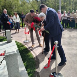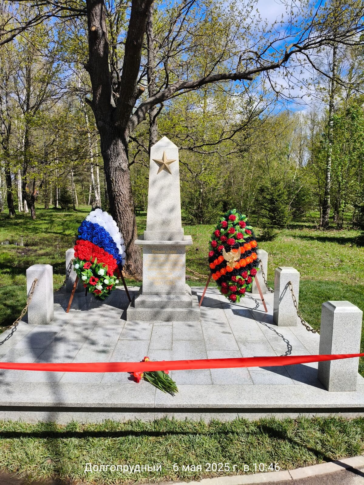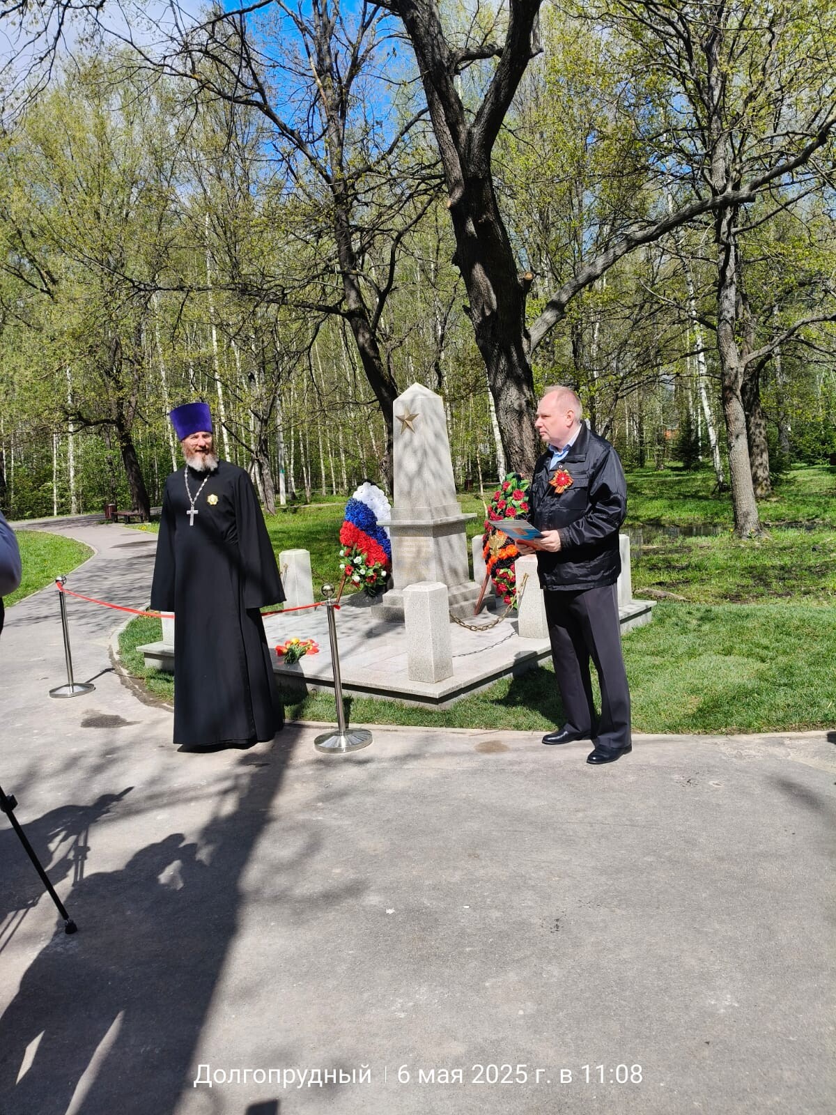 Сегодня в парке «Берёзовая роща» возле Покровского храма мкр. Шереметьевский г. Долгопрудный глава городского округа Р.М. Истомин совместно с депутатами и ветеранами Великой Отечественной войны открыли памятную стелу павшим жертвам времён войны.