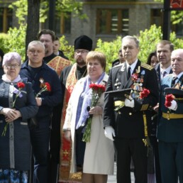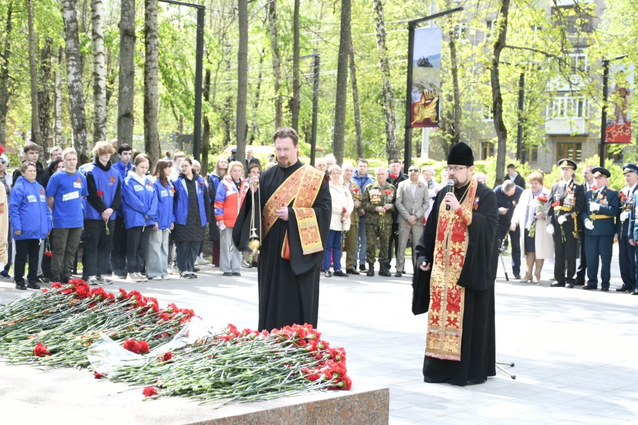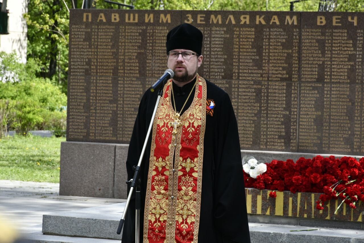 Участников митинга – ветеранов, военнослужащих СВО, общественников, молодёжь и жителей города поприветствовали Первый заместитель главы г.о. Долгопрудный Курсова С.В., председатель Совета депутатов Балабанов Д.В., председатель городского Совета ветеранов Дроздов В.П. Заместитель благочинного Долгопрудненского церковного округа, настоятель Георгиевского храма г. Долгопрудный, член Общественной палаты города протоиерей Александр Суворкин в сослужении диакона Евгения Нектарова совершил панихиду и обратился к участникам митинга со словом, в котором особо подчеркнул связь Дня Победы с Пасхой Христовой.