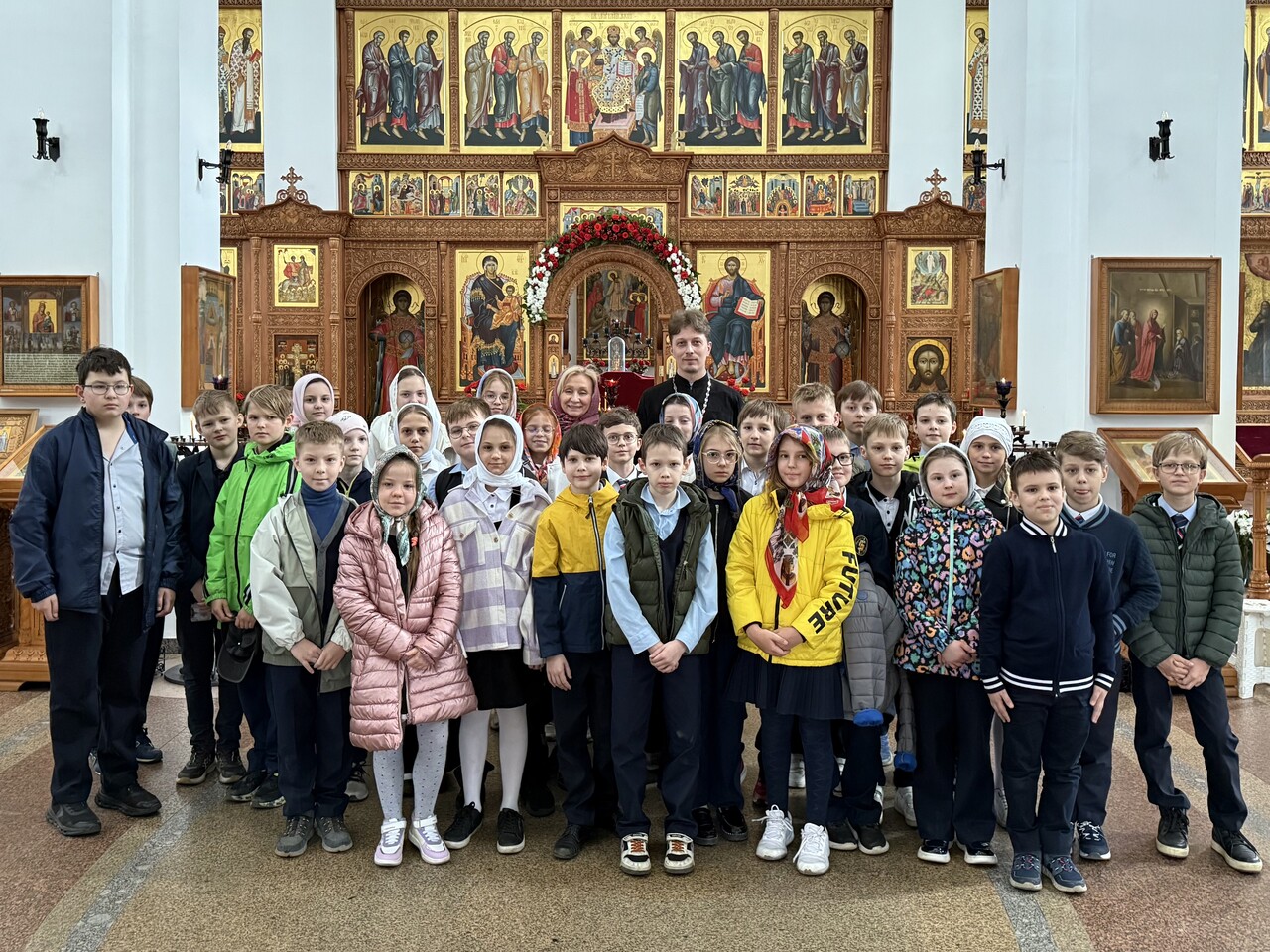 Юные лицеисты посетили храм в рамках урока ОРКСЭ (основы религиозной культуры и светской этики). Ответственный по работе с молодёжью и спортом в благочинии клирик храма священник Иоанн Слобжин провел экскурсию об особенностях внутреннего и внешнего церковного устройства и позвонил с ребятами на звоннице в колокола.
