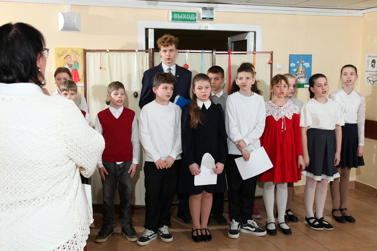 В праздничном оформлении помещения приняли участие учащиеся гимназии №13 г. Долгопрудный. Ребята не только передали свои пасхальные работы для украшения стен медицинского учреждения, но и изготовили открытки, которые вручались пациентам по окончании концерта.