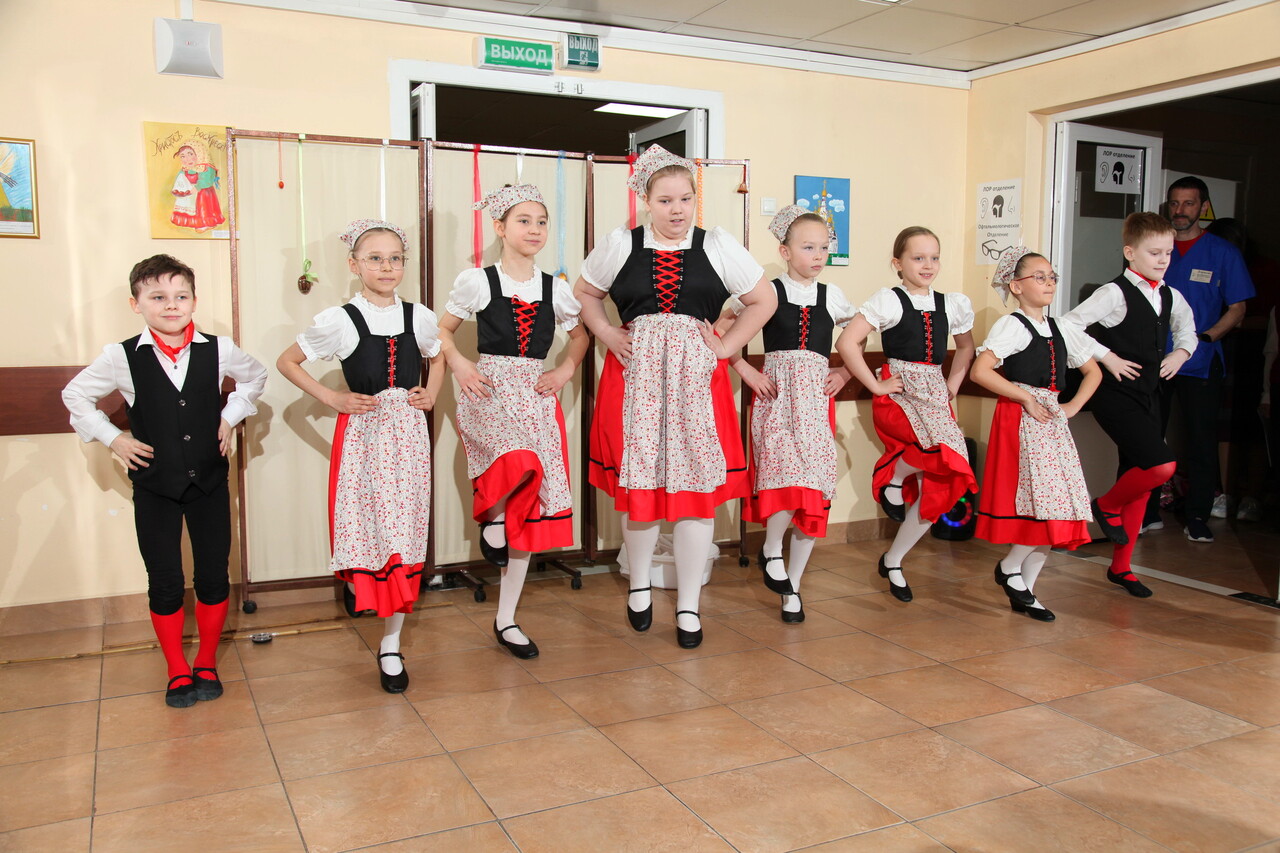В честь Светлого Христова Воскресения пациенты хирургического корпуса больницы собрались в уютном холле гинекологического отделения, где прошёл пасхальный концерт, организованный добровольческим объединением благочиния. Здесь звучали пасхальные песнопения, исполненные певчими храма Преображения Господня, хоровые произведения детско-юношеского хора Спасского храма в Котово. Юные прихожане читали стихи, исполняли произведения на музыкальных инструментах. В концертную программу вошло выступление ребят студии народного танца под руководством Александра Костина.