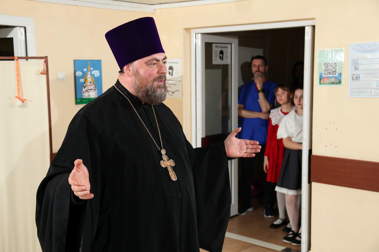 От лица духовенства с Пасхой Господней пациентов поздравил настоятель храма Покрова Пресвятой Богородицы г. Долгопрудный прот. Александр Хуснутдинов. Затем торжества переместились в палаты отделений медицинского учреждения, где также звучали поздравления и тёплые пожелания. Затем певчие храма Преображения Господня поздравили раненых воинов с Воскресением Христовым и исполнили для них пасхальные песнопения.