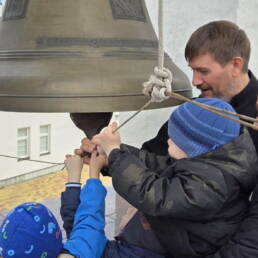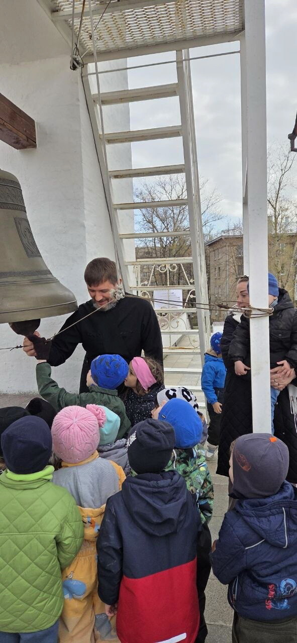 Диакон Александр Нестеров встретил дошкольников из детского сада №22, а священник Вячеслав Осипов – учеников физмат-лицея №5. Для детей в храме была проведена экскурсия, а затем все желающие смогли опробовать свои звонарские навыки на храмовой звоннице.