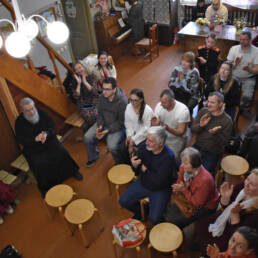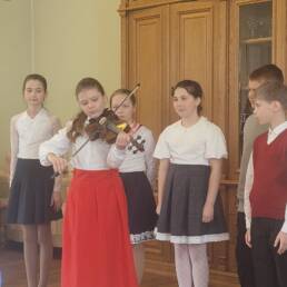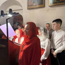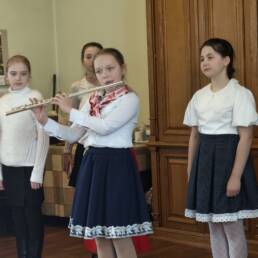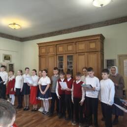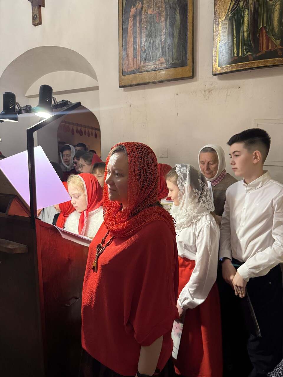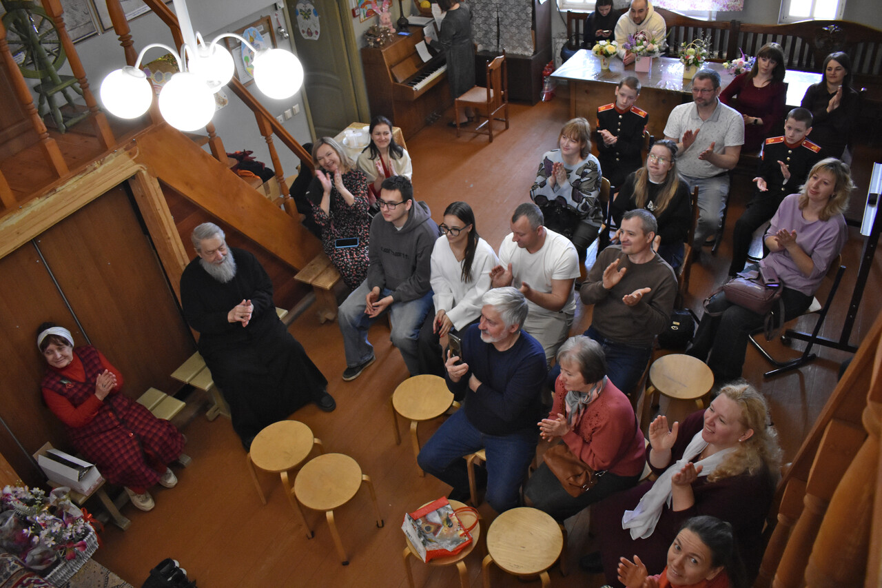 По окончании службы хористы выступили в трапезной перед прихожанами храма с небольшим пасхальным концертом, читая стихи, играя на различных музыкальных инструментах (аккордеон, скрипка, флейта, фортепиано) и исполняя песни. «Пропой со мной Царю Небесному хвалу», – пели юные клирошане, обращаясь к присутствующим.