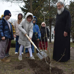 Также в этот светлый день в здании Воскресной школы Спасского храма состоялся детский праздник. Воспитанники показали театральное представление, участвовали в играх, катании на пони, а также поддержали традицию посадки саженцев новых деревьев на территории храма. Завершился праздник чаепитием.