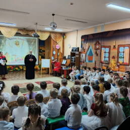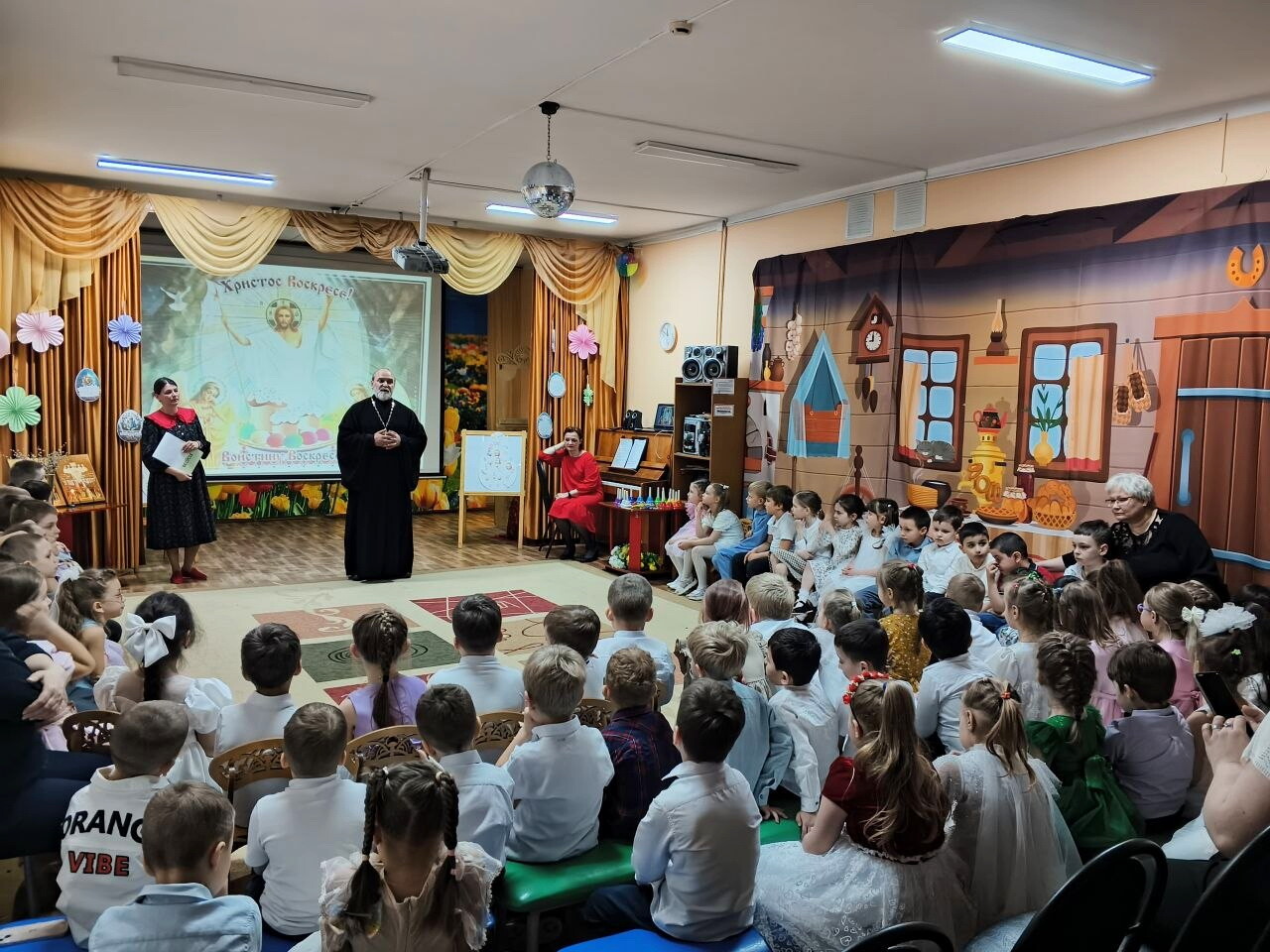 15 апреля в детском саду «Золотой ключик» прошёл Пасхальный концерт. На праздник пригласили священника Алексия Куприянова, клирика Георгиевского прихода.