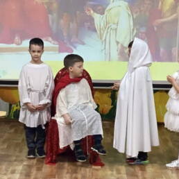 Ребята с вдохновением читали стихи, исполняли песни и танцевальные номера. Кульминацией праздника стал трогательный мини-спектакль по мотивам проповеди святой Марии Магдалины императору Тиверию о Воскресении Христа.