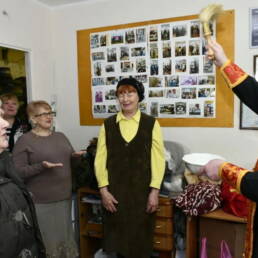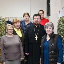 В этом году участницы сообщества начали вязать детские вещи, которые отправляются в ДНР и ЛНР. За праздничным столом отец Александр и руководитель проекта Т.И. Воробьева обсудили планы на будущее, среди которых – предстоящая паломническая поездка в Троице-Сергиеву Лавру.