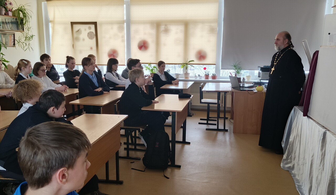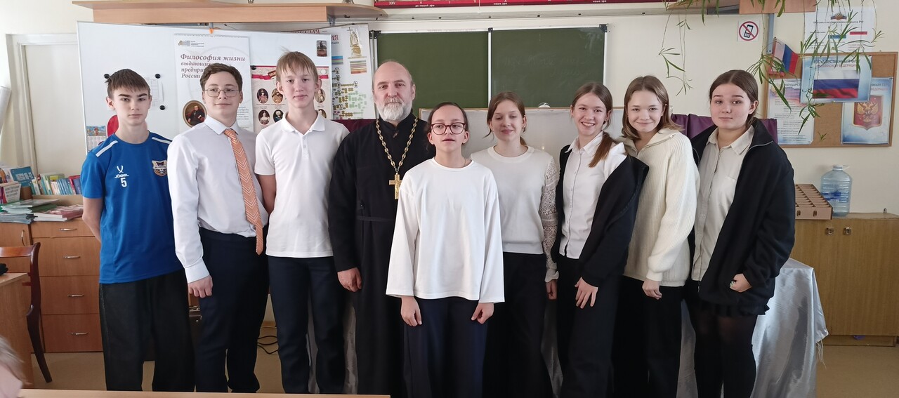 23 января, состоялась встреча иерея Алексия Куприянова, клирика Георгиевского храма г. Долгопрудный, с учениками гимназии №13.