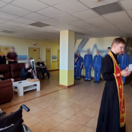 Был совершен молебен о здравии болящих. После молебна отец Алексий рассказал о празднике Пасхи и поздравил пациентов с праздником.