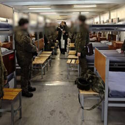 19 января настоятель храма прп. Серафима Вырицкого г. Долгопрудный иерей Алексий Купцов посетил воинские подразделения города и поздравил военнослужащих с праздником Богоявления.