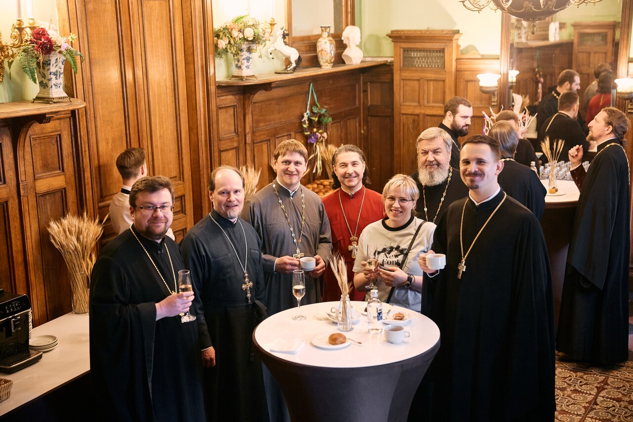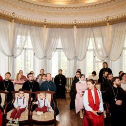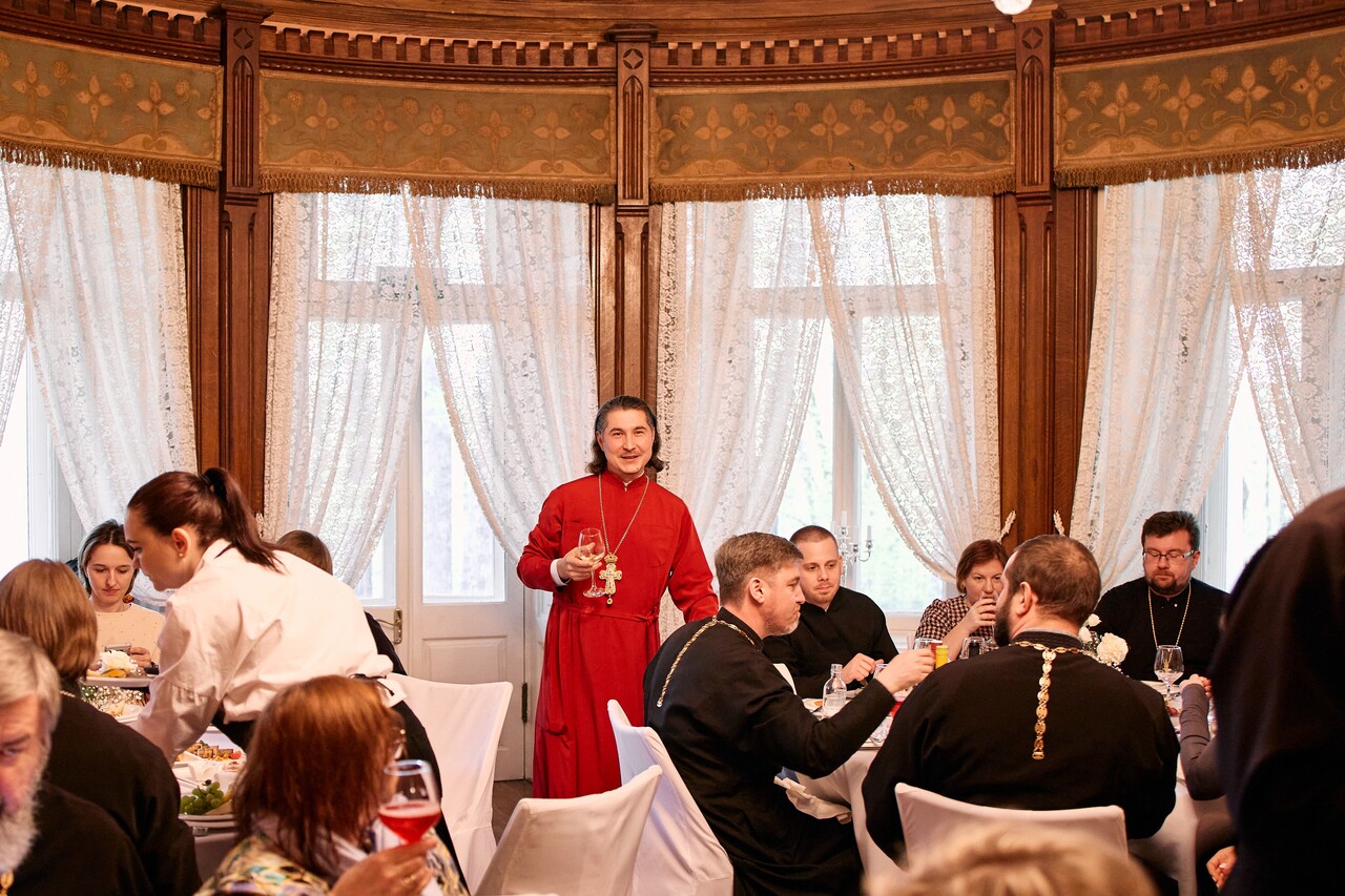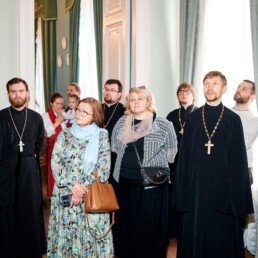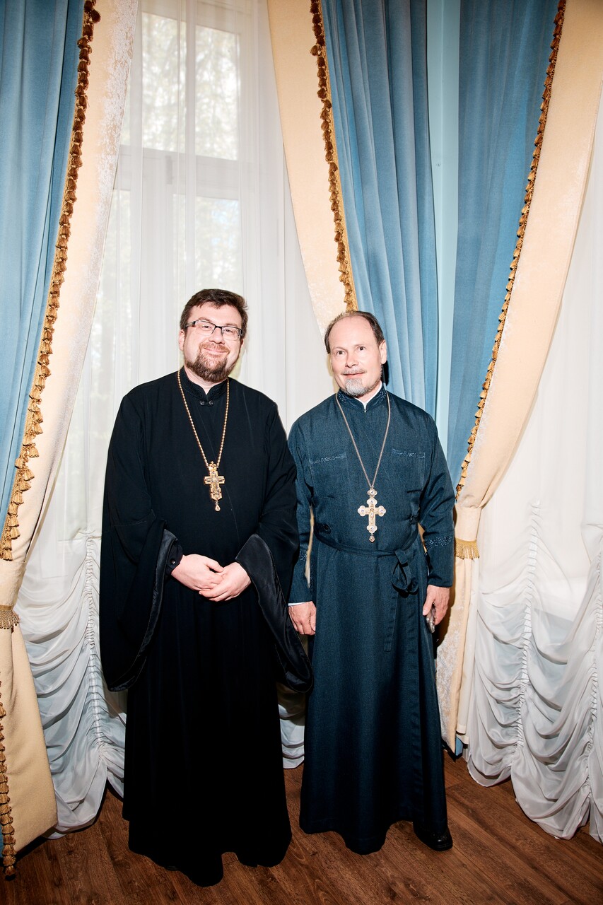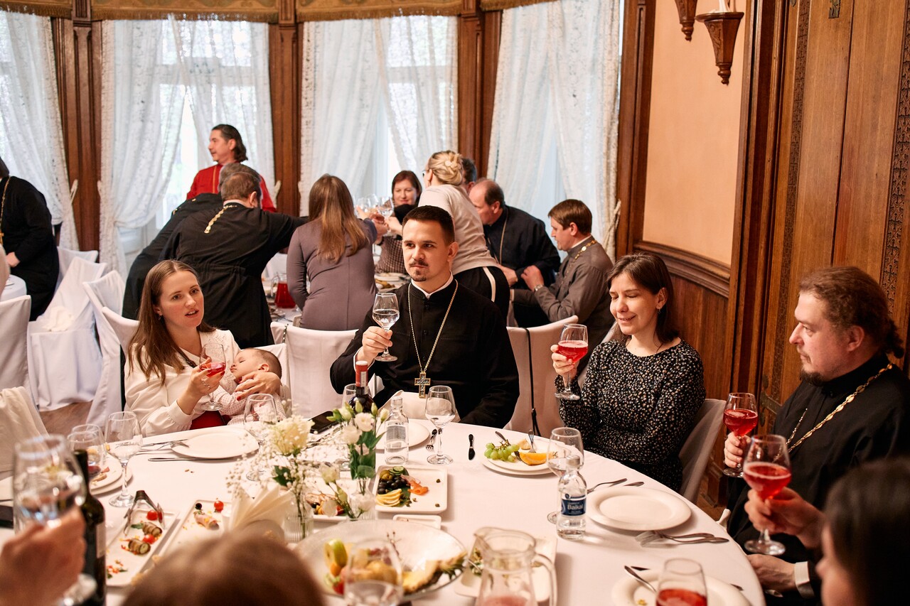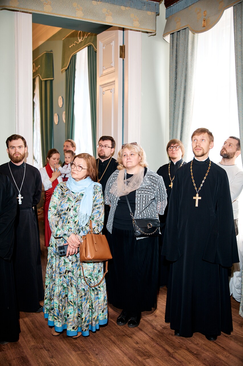Праздник продолжился угощением в Парадном доме усадьбы Середниково – за совместной трапезой семьи священников из разных благочиний имели возможность познакомиться и завязать дружеское общение. Сотрудники комплекса провели для гостей экскурсию по главному зданию усадьбы.