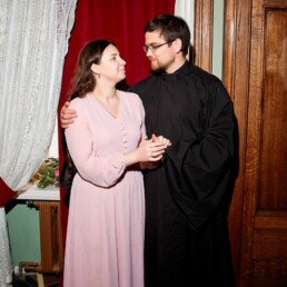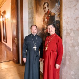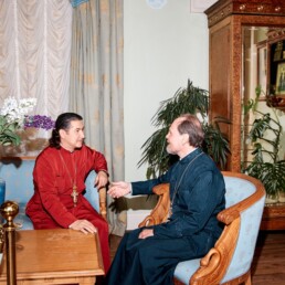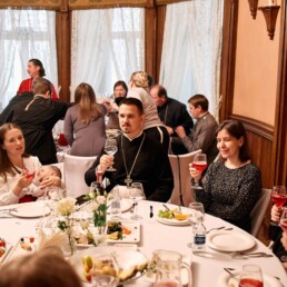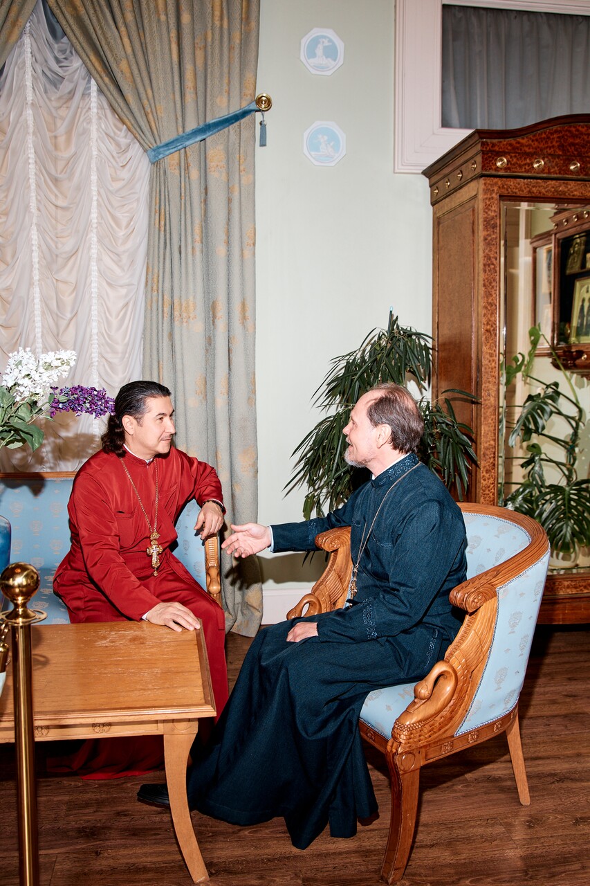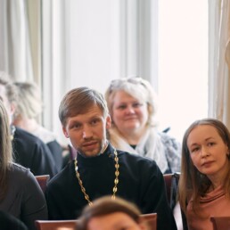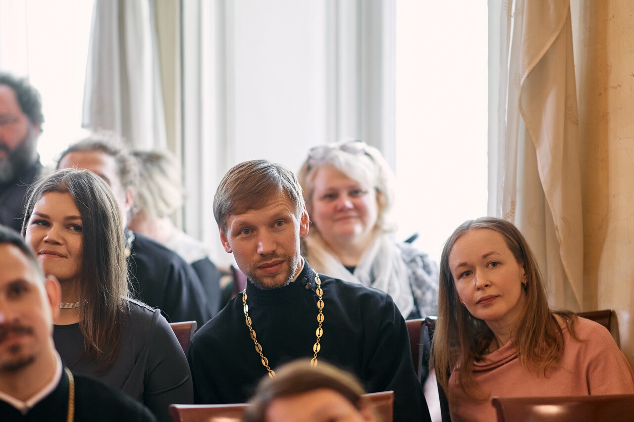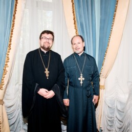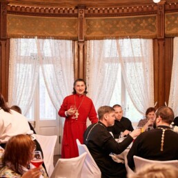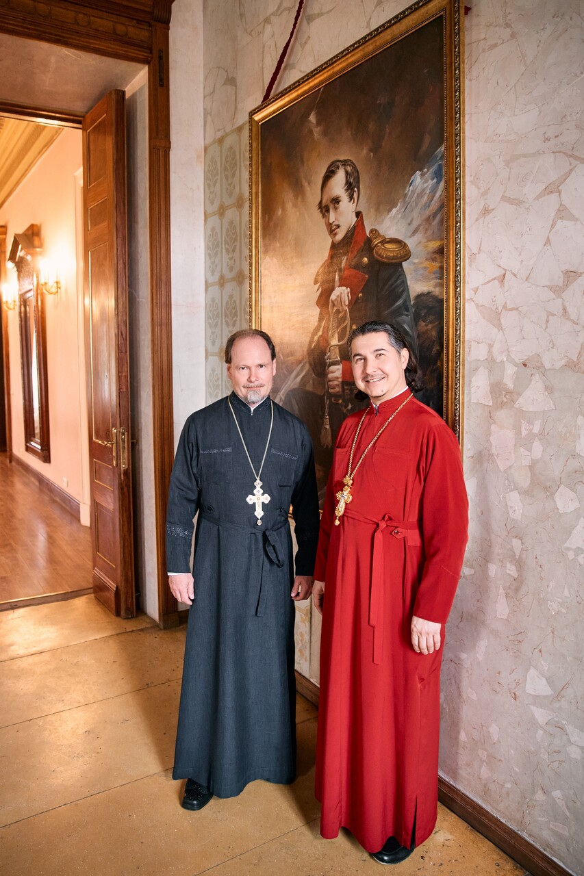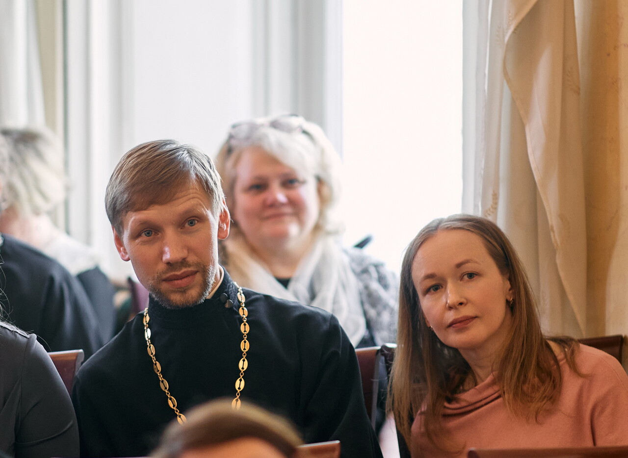 Праздник продолжился угощением в Парадном доме усадьбы Середниково – за совместной трапезой семьи священников из разных благочиний имели возможность познакомиться и завязать дружеское общение. Сотрудники комплекса провели для гостей экскурсию по главному зданию усадьбы.