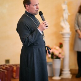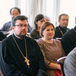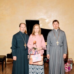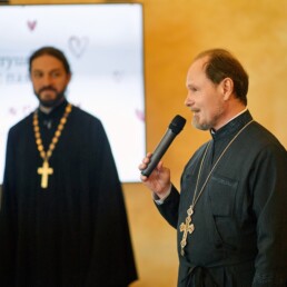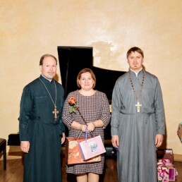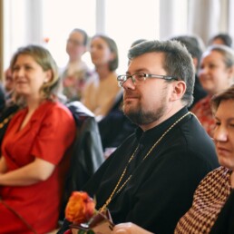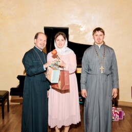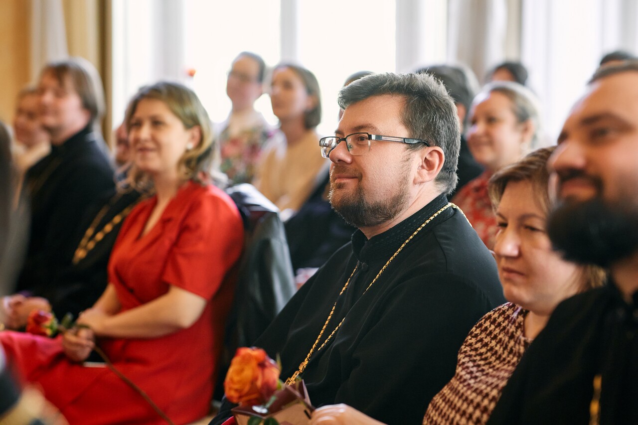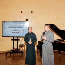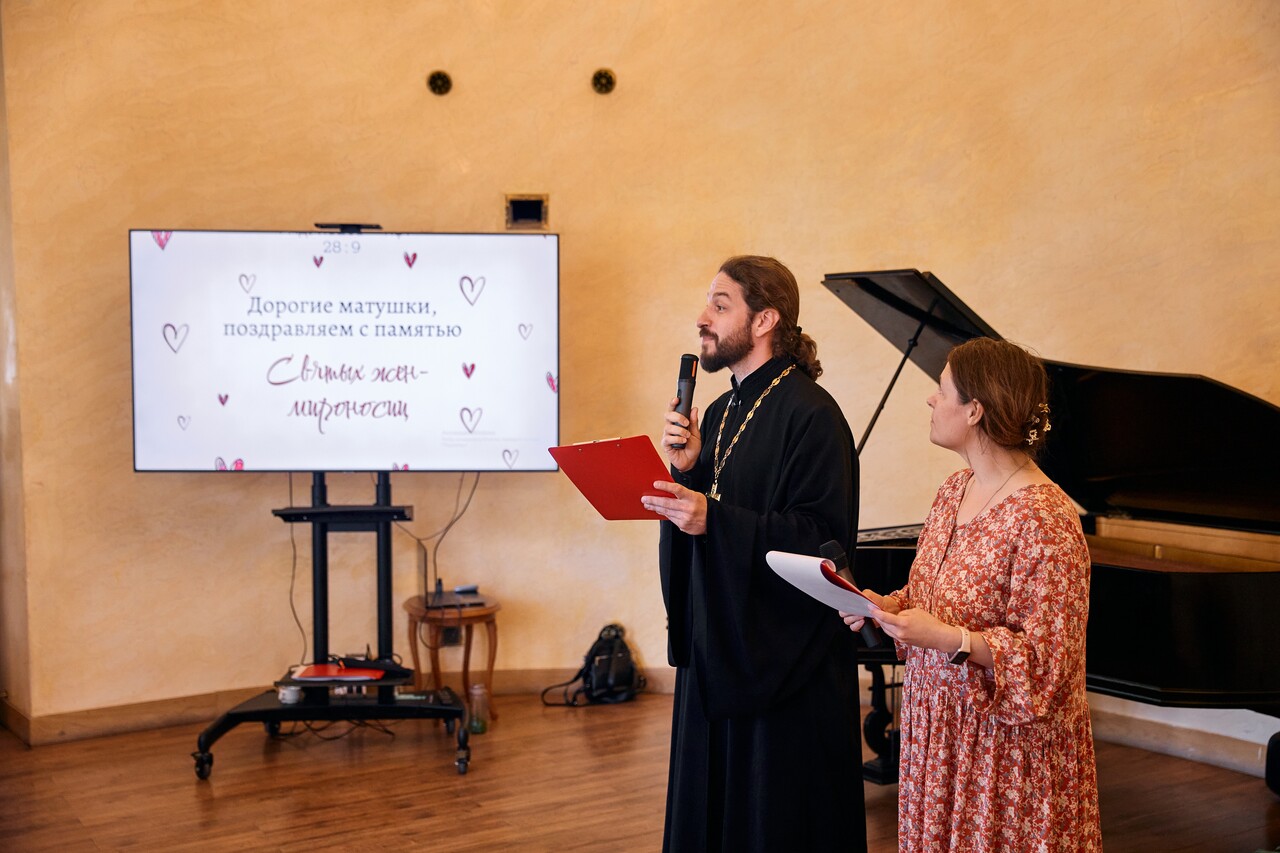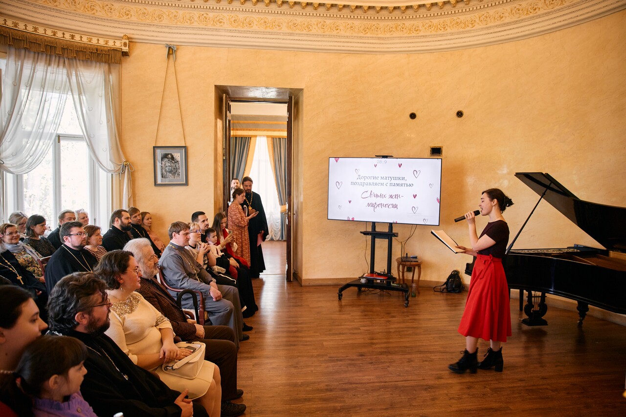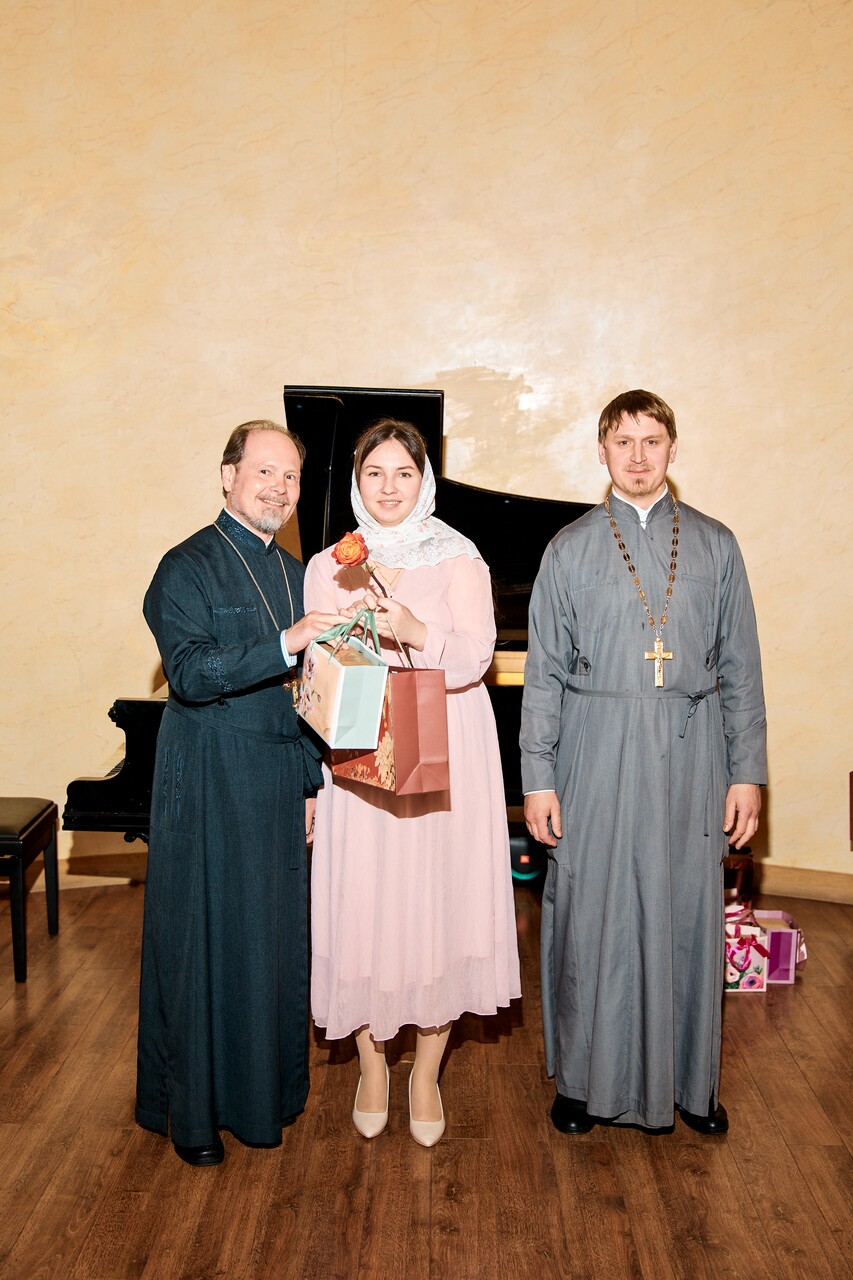 Далее состоялся торжественный акт, который провели организаторы праздника – председатель Комиссии по вопросам семьи, защиты материнства и детства Сергиево-Посадской епархии иерей Александр Насибулин и его супруга Анастасия. С поздравительным словом к гостям обратился благочинный Долгопрудненского церковного округа протоиерей Андрей Хмызов, особо отметивший важность подобных мероприятий, и благочинный Химкинского церковного округа иерей Павел Тарасов, поблагодаривший организаторов встречи и выразивший надежду на дальнейшее развитие этого начинания. Благочинные вручили подарки жёнам священников и отметили труды каждой из матушек на благо семьи и Церкви. Украшением праздника стали музыкальные и песенные номера.