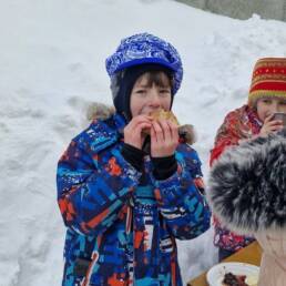 Праздник завершился чаепитием с блинами на свежем воздухе.