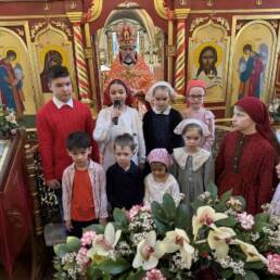 На проповеди отец Алексий напомнил всем верующим о подвиге жен-мироносиц и поздравил женщин с православным женским днем, а учащиеся Воскресной школы выступили перед прихожанами со стихами, посвященными Пасхе, святым женам-мироносицам, мамам и бабушкам. После этого детей ждала развлекательная программа в церковном саду, а взрослых – чай из самовара с пирогами.
