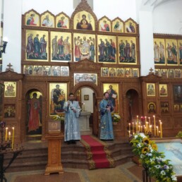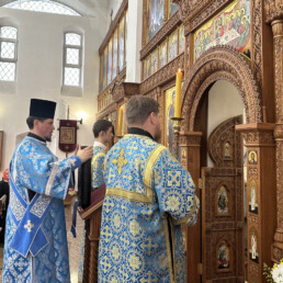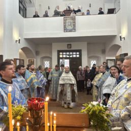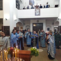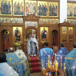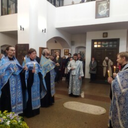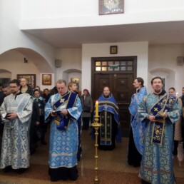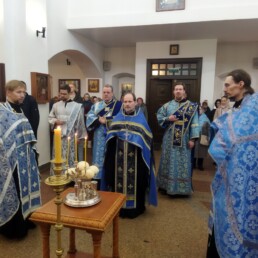Сегодня, 28 октября, на Преображенском приходе г. Долгопрудный отпраздновали престольный праздник храма иконы Божией Матери «Спорительница хлебов». Божественную литургию возглавил благочинный Долгопрудненского церковного округа протоиерей Андрей Хмызов, ему сослужили протоиерей Олег Корытко, руководитель Референтуры Московской Патриархии, заместитель председателя Патриаршей наградной комиссии, благочинные церковных округов Сергиево-Посадской епархии: протоиерей Антоний Тирков (Солнечногорское благочиние), иерей Димитрий Поповский (Королёвское благочиние), заместители благочинных: протоиерей Александр Суворкин (Долгопрудненский округ), иерей Сергий Козлов (Солнечногорский округ), настоятель Уаровского храма г. Химки иеромонах Леонтий (Васильев), клирик храма Новомучеников и исповедников Российских г. Химки игумен Владимир (Денисов), а также духовенство Преображенского храма и Долгопруденского благочиния. Диаконский чин возглавил патриарший архидиакон Московского кафедрального соборного храма Христа Спасителя Констатин Барган.