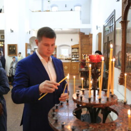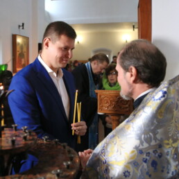 Торжественное богослужение посетил врио г. Долгопрудный Роман Михайлович Истомин.