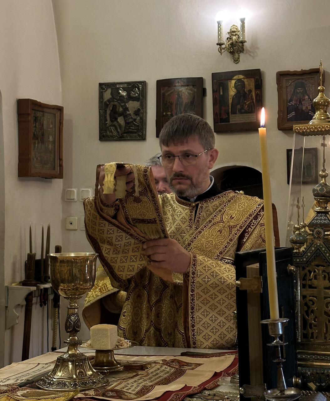 Сегодня, 29 августа, Божественную литургию в честь престольного праздника в храме Спаса Нерукотворного Образа в Котово, г. Долгопрудный возглавил благочинный Долгопрудненского церковного округа протоиерей Андрей Хмызов.