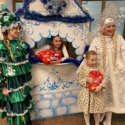 А затем ребят закружили в хороводе вокруг рождественской ёлочки сказочные герои. Для юных долгопрудненцев звучали любимые песенки, дети отгадывали весёлые загадки и выполняли задания Деда Мороза и Снегурочки.