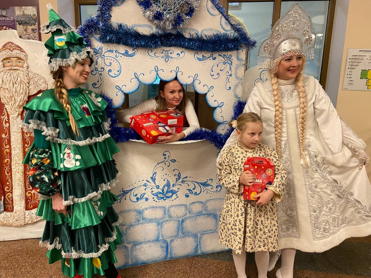 А затем ребят закружили в хороводе вокруг рождественской ёлочки сказочные герои. Для юных долгопрудненцев звучали любимые песенки, дети отгадывали весёлые загадки и выполняли задания Деда Мороза и Снегурочки.