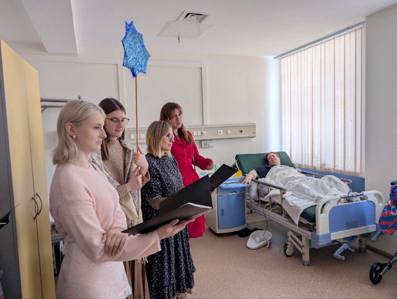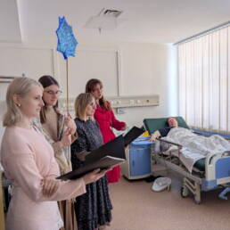 После концерта с приветственным словом к приглашённым обратился настоятель храма Покрова Пресвятой Богородицы протоиерей Александр Хуснутдинов. Гостям вручались рождественские листки и сладкие подарки, но на этом праздник не закончился. Поздравления продолжились прямо в палатах: колядки, добрые пожелания и молитвенная поддержка дошли до каждого, кто не смог покинуть больничную койку, и были приняты с радостью и сердечной благодарностью.
