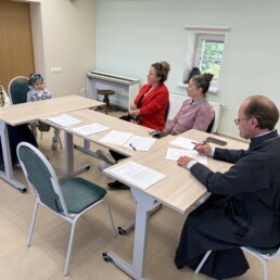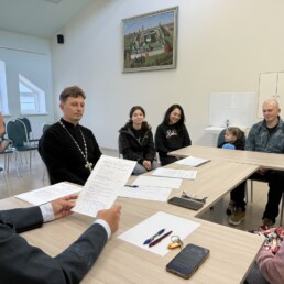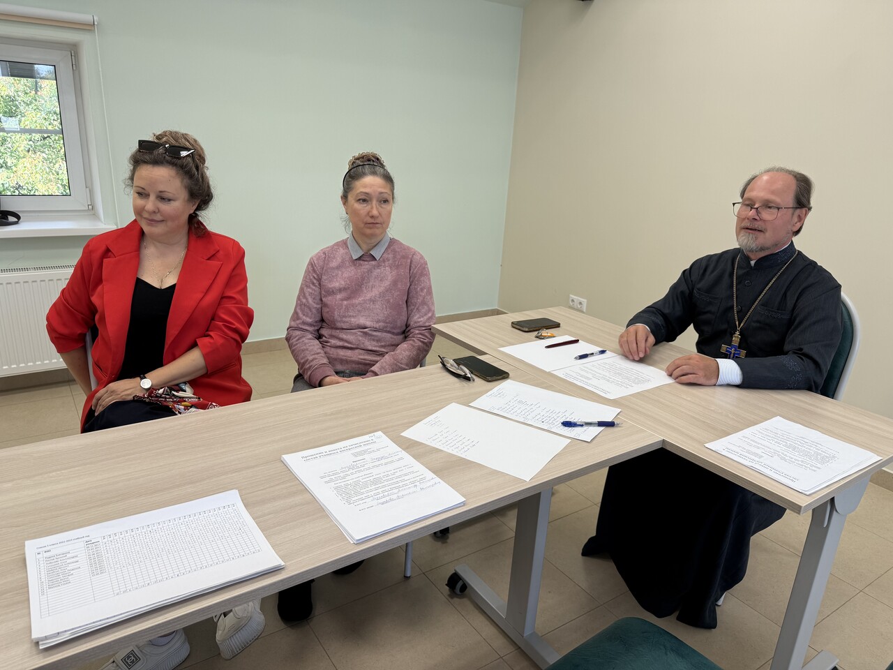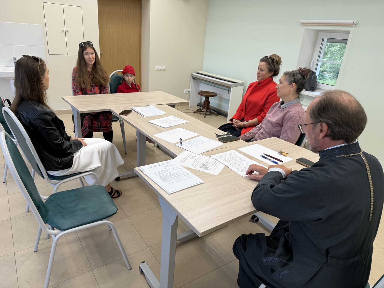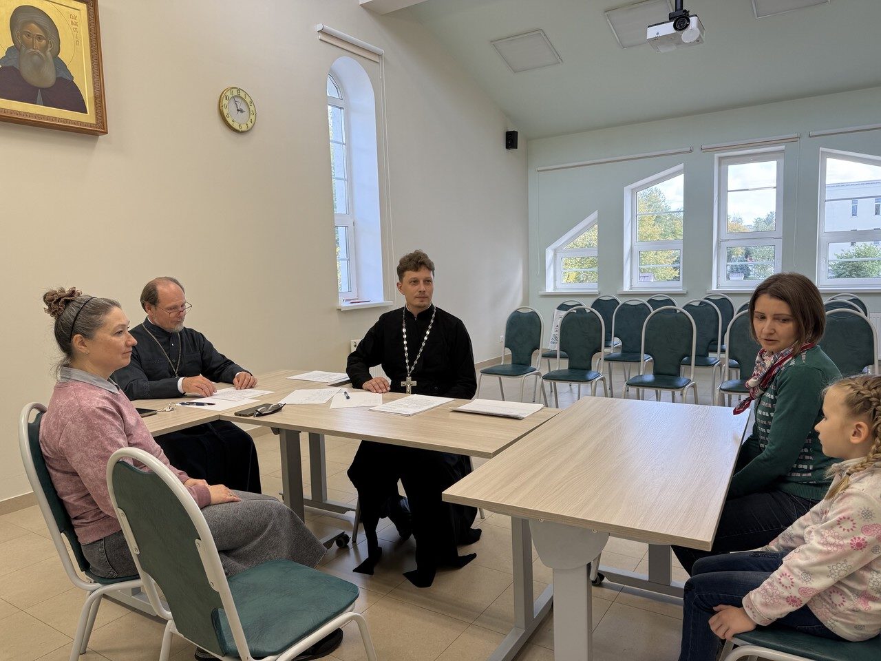 Собеседование проводил благочинный церквей Долгопрудненского округа настоятель храма протоиерей Андрей Хмызов в присутствии руководителя Воскресной школы священника Иоанна Слобжина и педагогического коллектива.