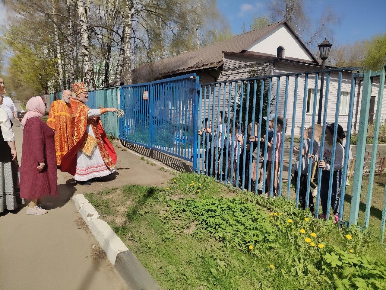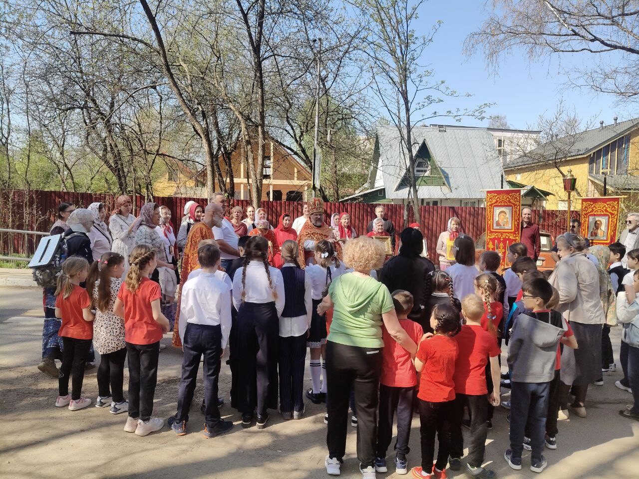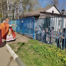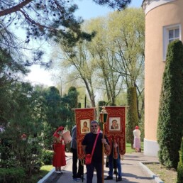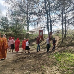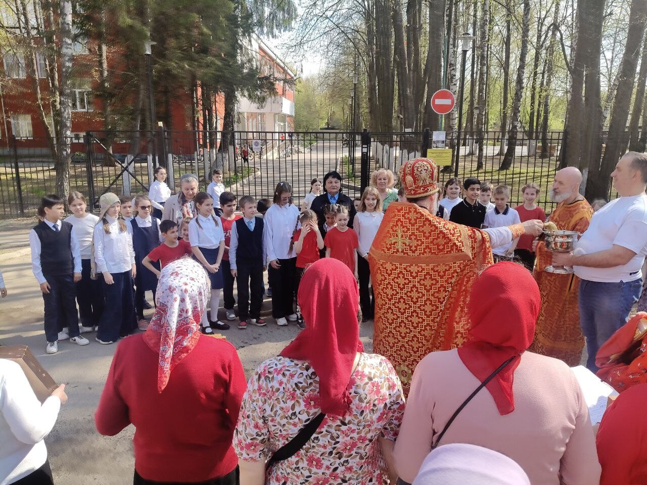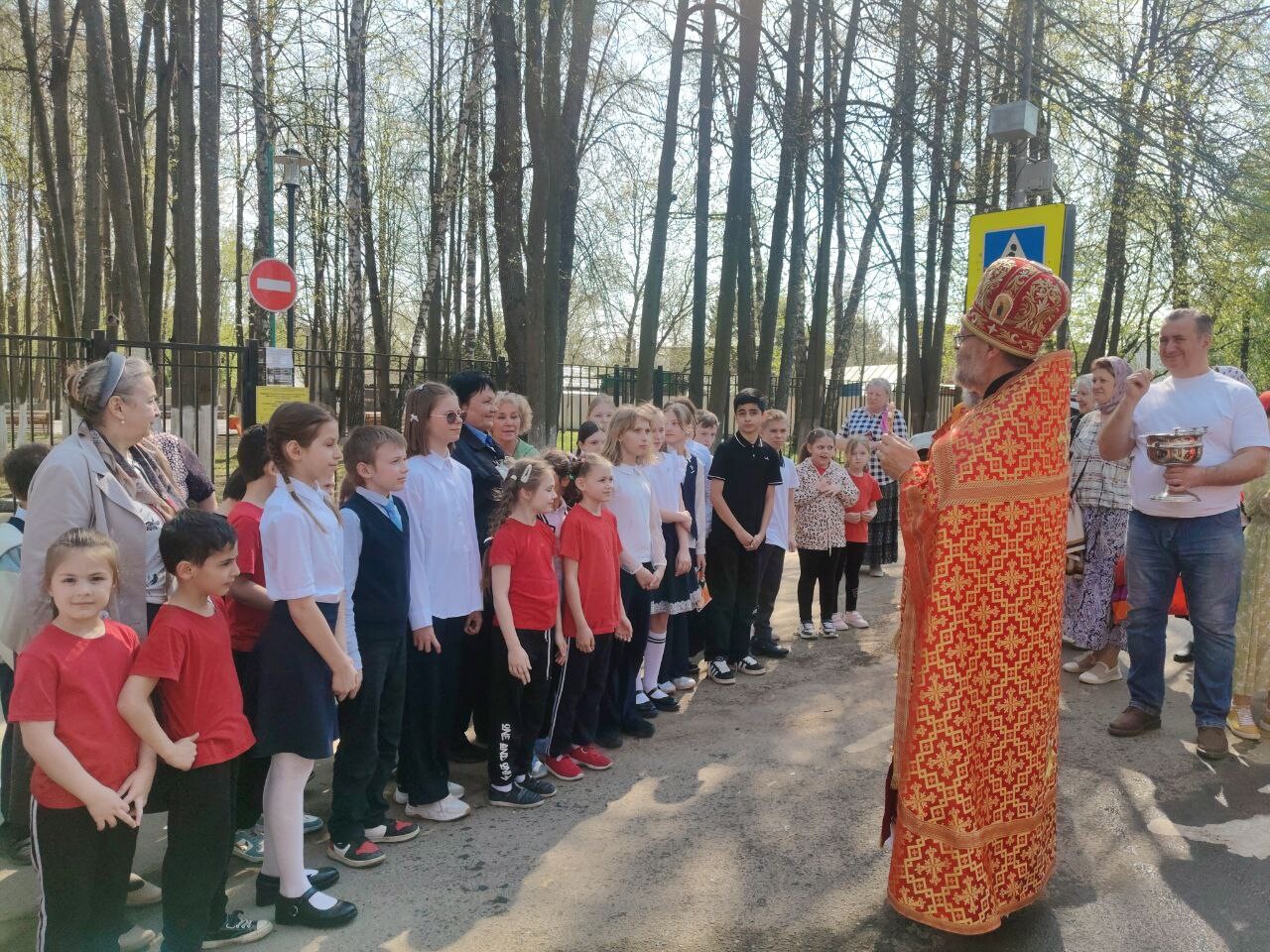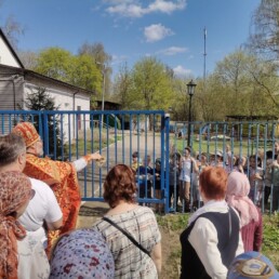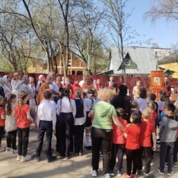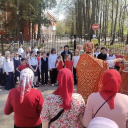 Во время крестного хода было сделано несколько остановок, в том числе у школы №6 им. Н.Ф. Гастелло и у детского сада №11. Отец Алексий прочитал отрывки из Евангелия и окропил учащихся и участников крестного хода святой водой.