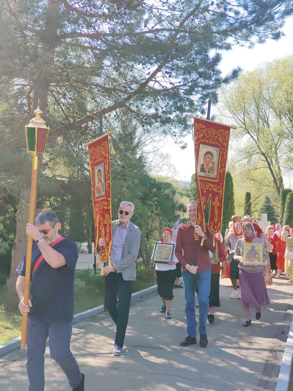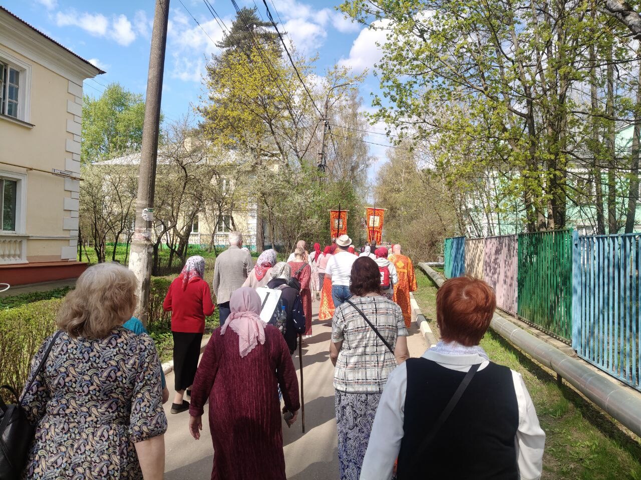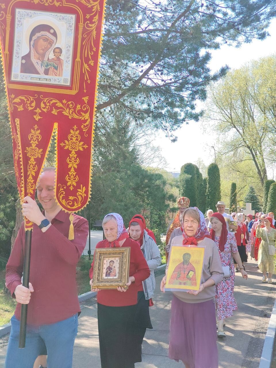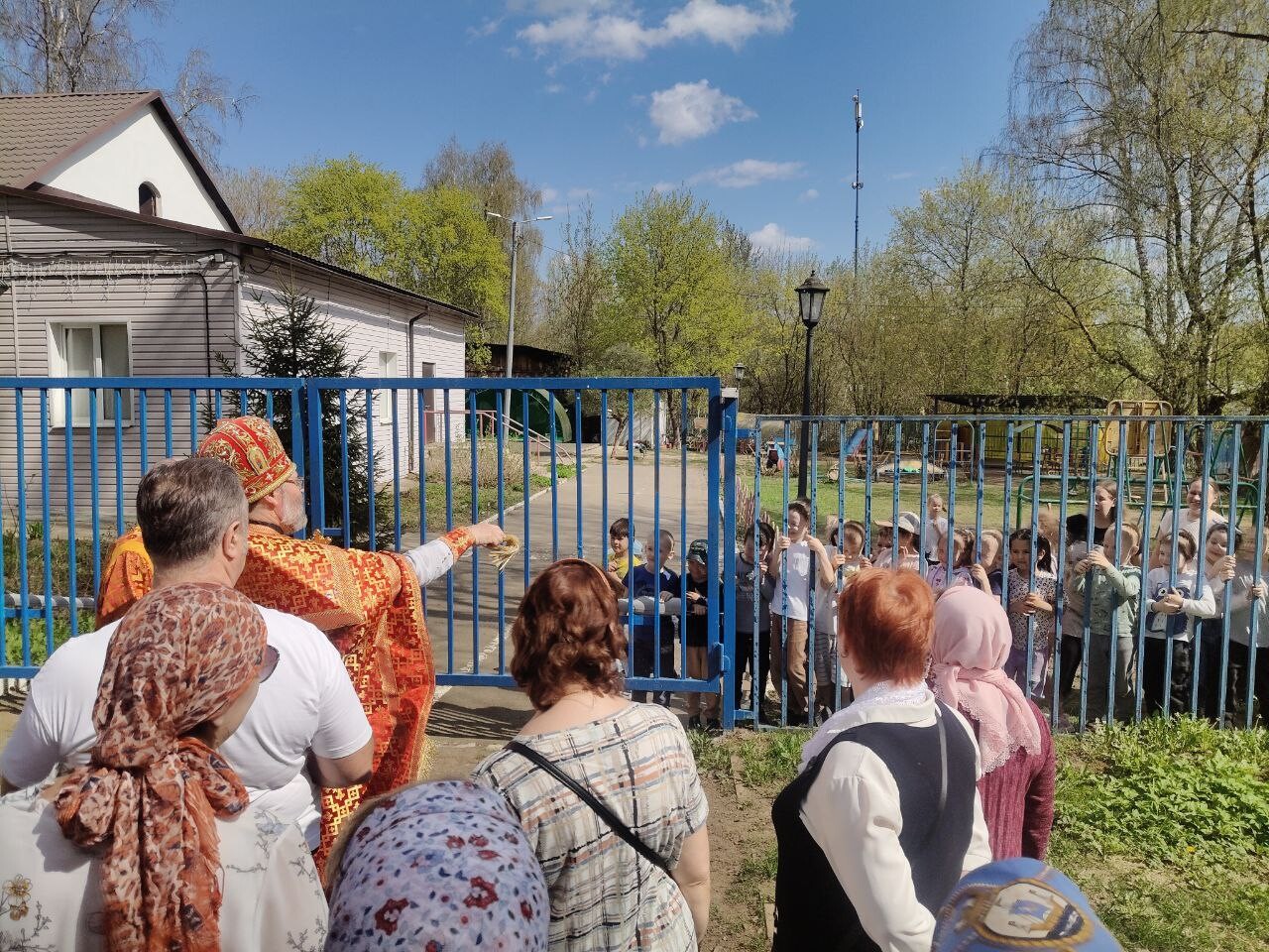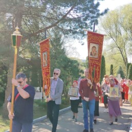 Во время крестного хода было сделано несколько остановок, в том числе у школы №6 им. Н.Ф. Гастелло и у детского сада №11. Отец Алексий прочитал отрывки из Евангелия и окропил учащихся и участников крестного хода святой водой.