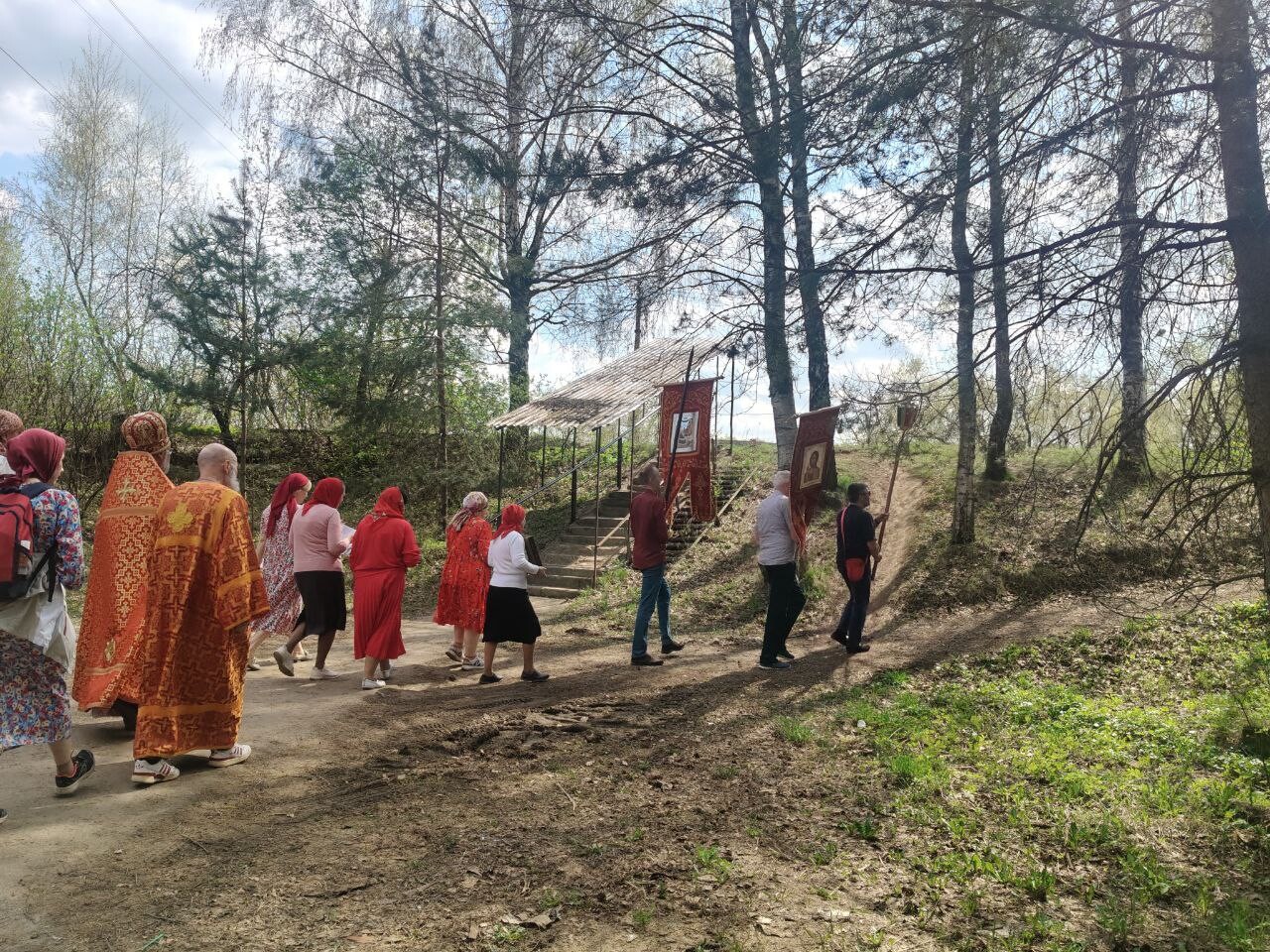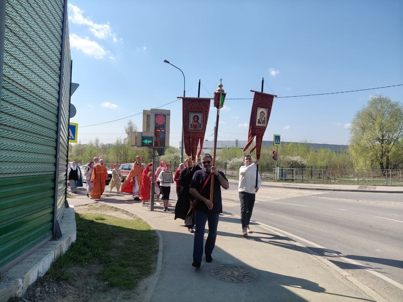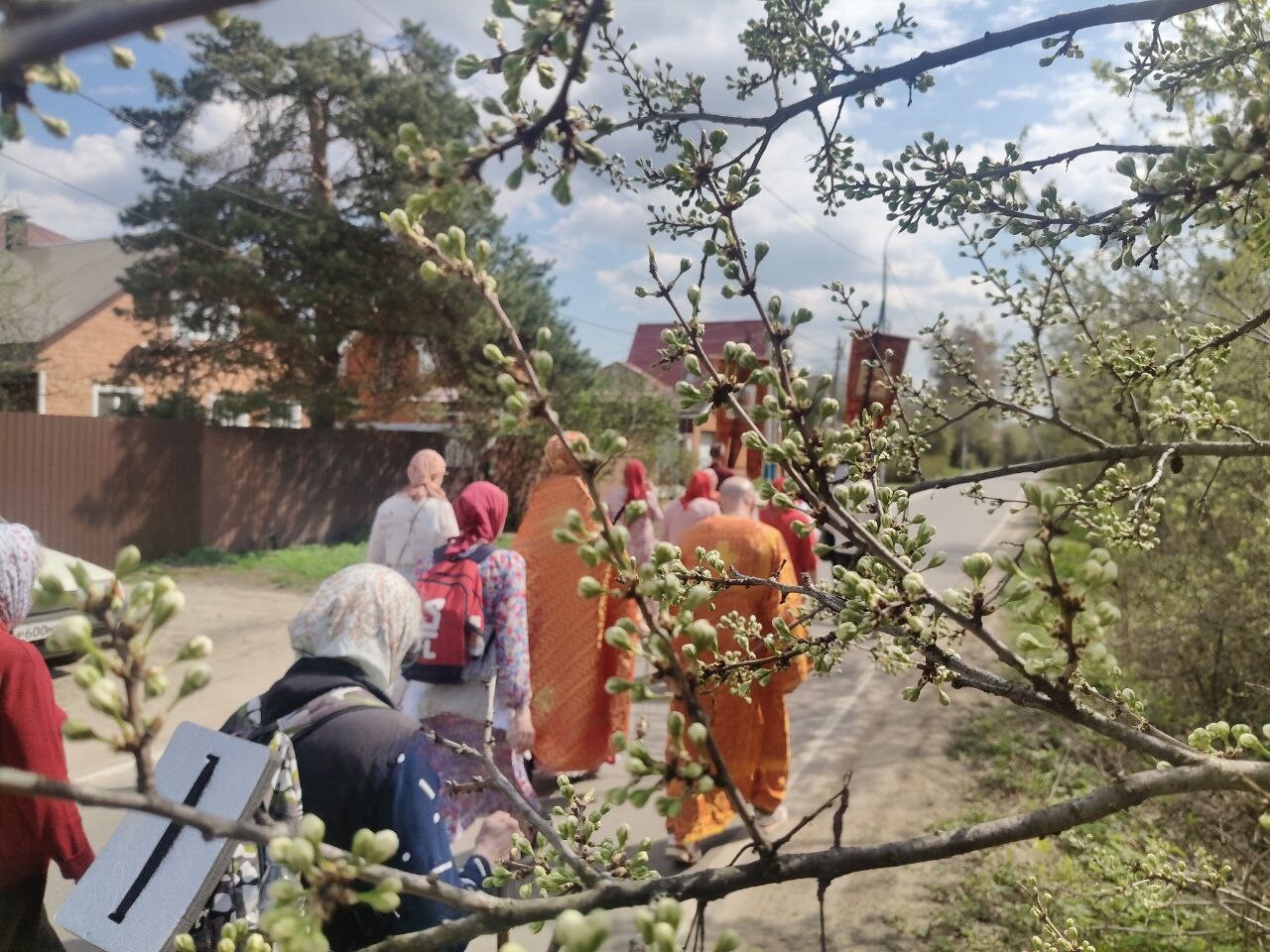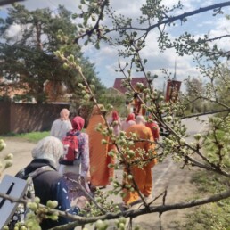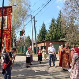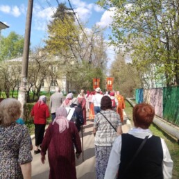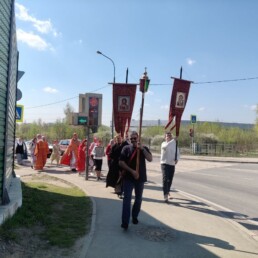 Под пение пасхального канона и стихир Пасхи верующие прошли маршрут протяженностью 7 километров от Спасского храма в микрорайоне Павельцево и далее через микрорайоны Хлебниково, Шереметьевский, Нефтебаза вернулись обратно.