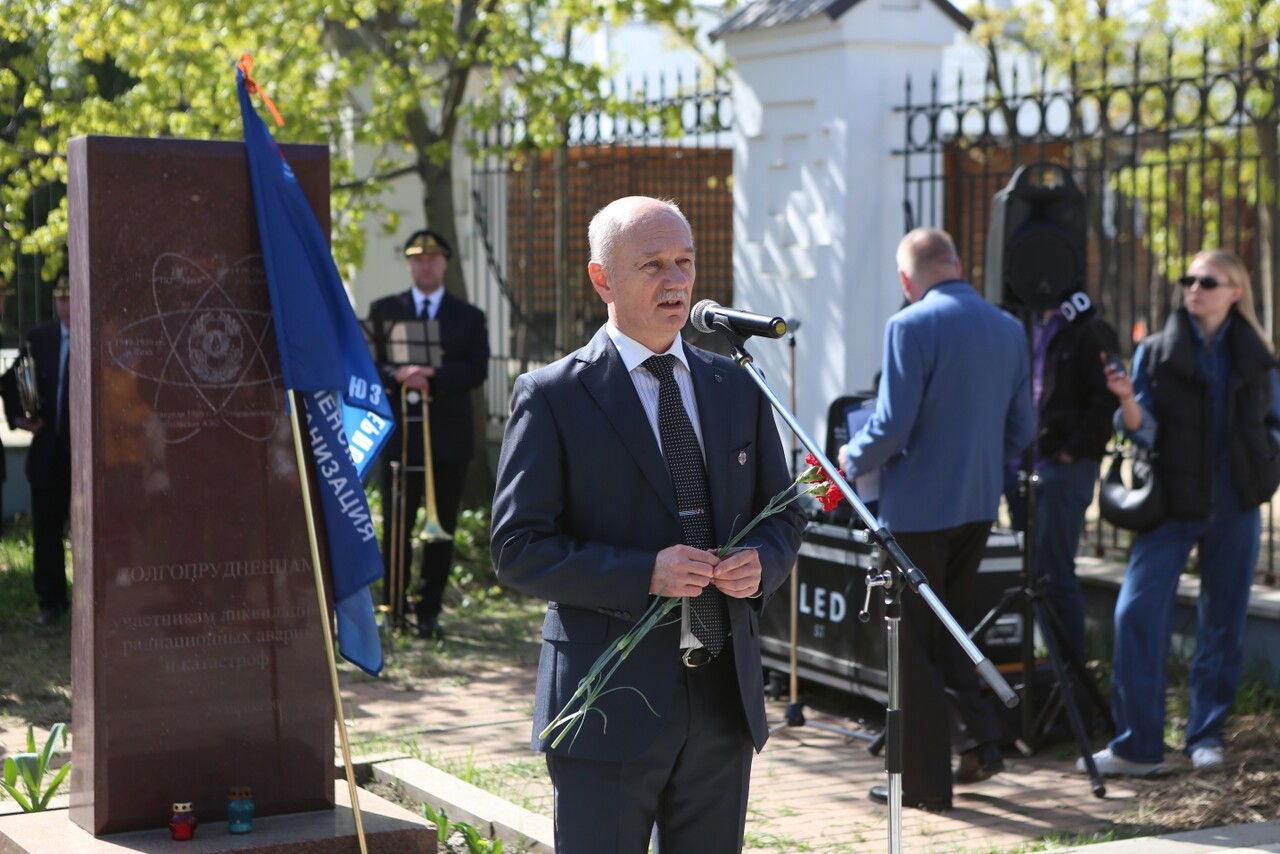 В сквере у памятного мемориала память ликвидаторов Чернобыльской аварии почтили председатель Совета депутатов г.о. Долгопрудный Балабанов Д.В., члены Долгопрудненского отделения общественной организации Союз «Чернобыль» России, представители администрации, духовенства, городские депутаты.