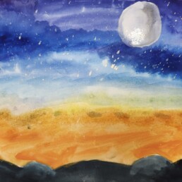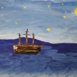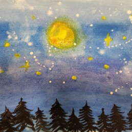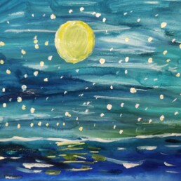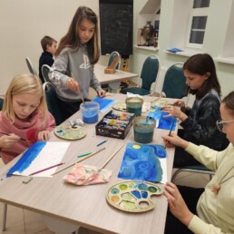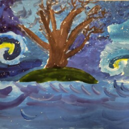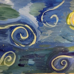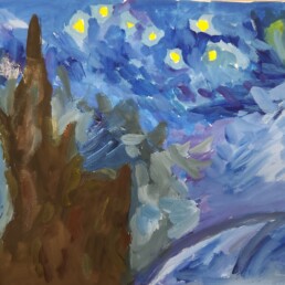 Исследовав по знаменитым картинам уже хорошо известного художника Винсента Ван Гога все тонкости синего колорита, ребята старались создать свои особенные кобальтово-лазуритные работы.